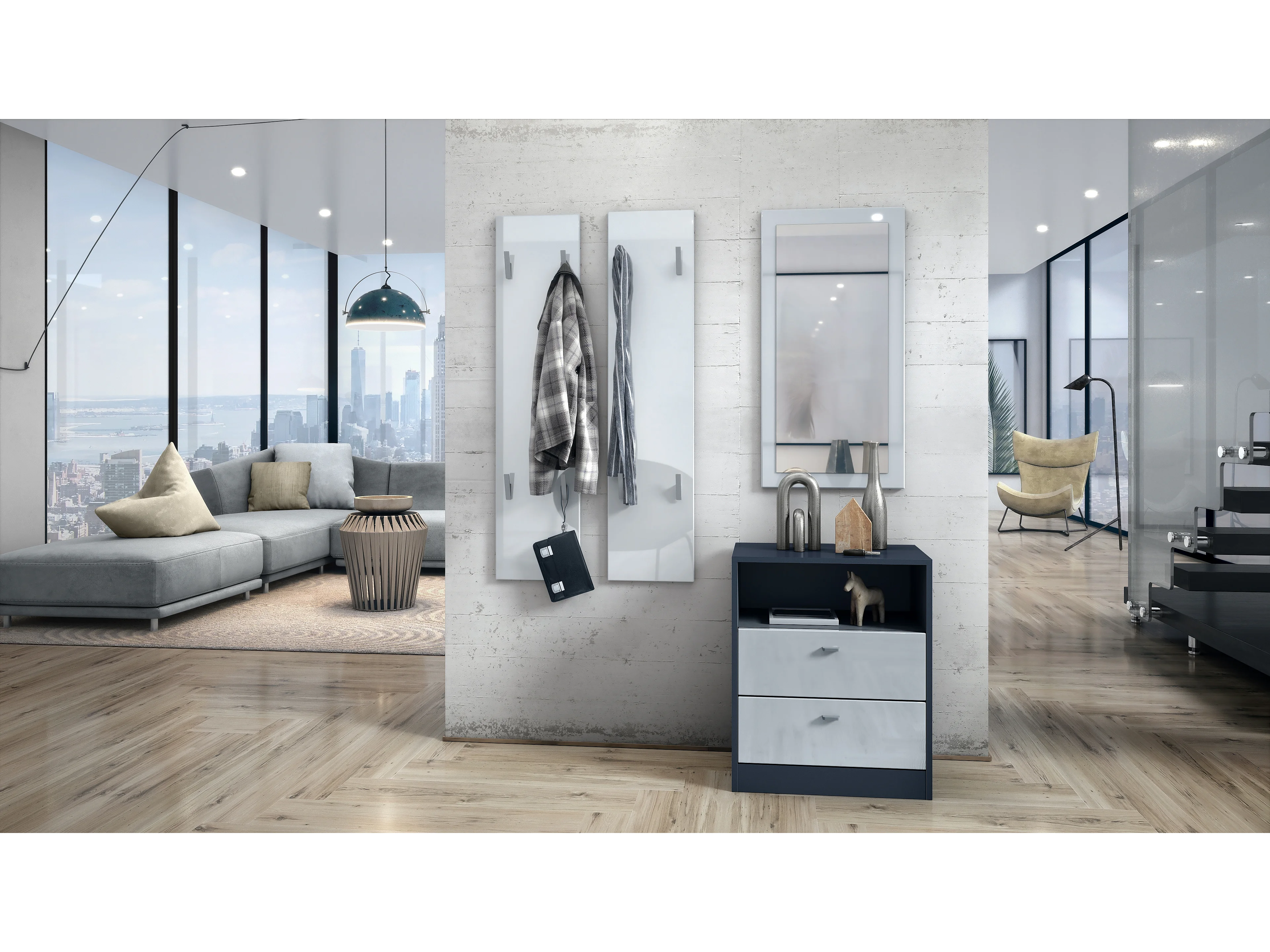 Panel de Pared 140, Hecho en Alemania, Panel Perchero con 2 Paneles, blanco de alto brillo (je 24 x 140 x 2 cm)