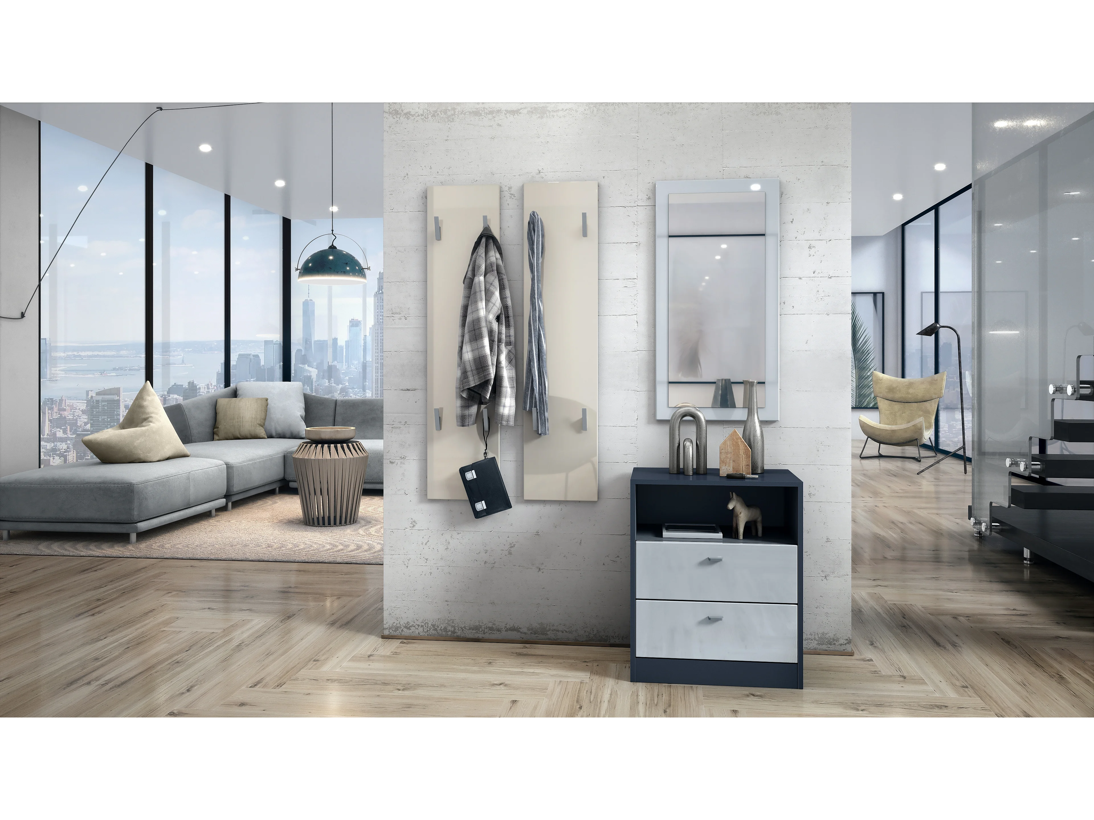 Panel de Pared 140, Hecho en Alemania, Panel Perchero con 2 Paneles, crema de alto brillo (je 24 x 140 x 2 cm)
