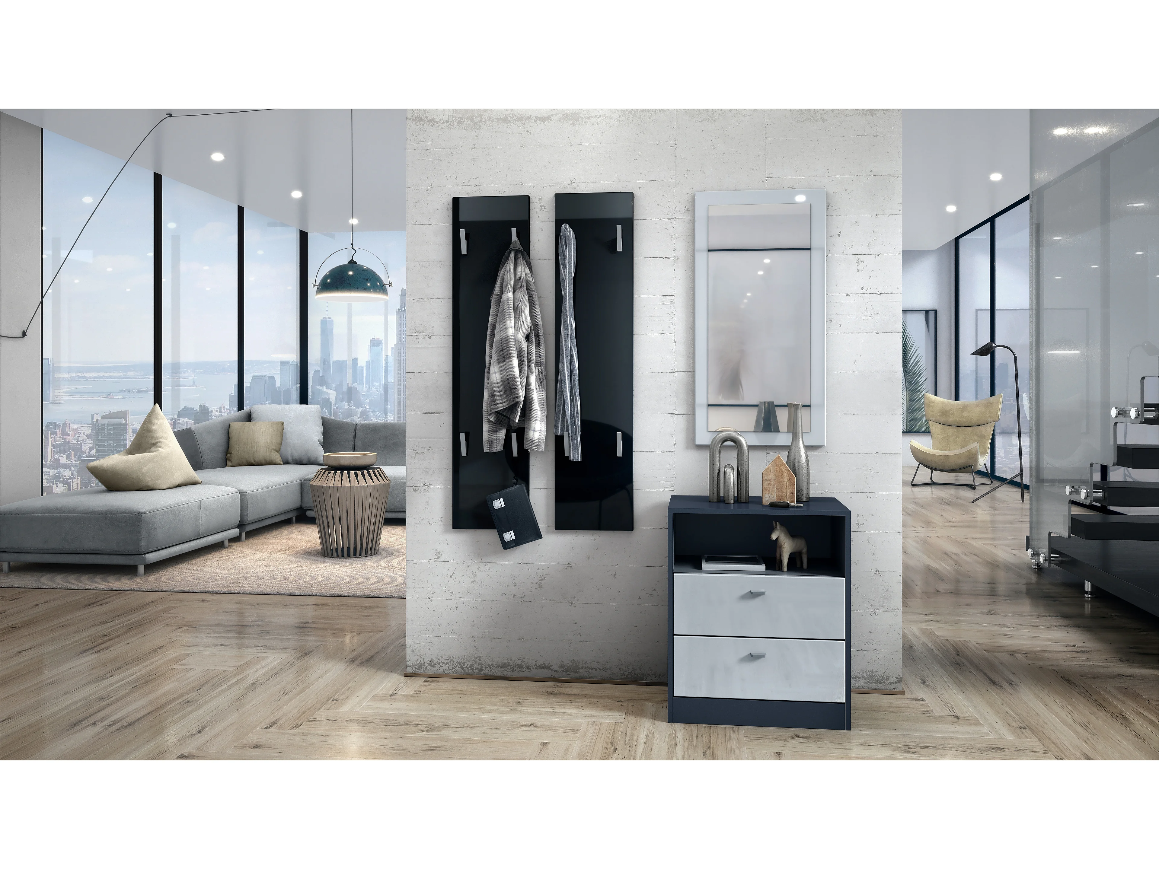 Vladon Mueble recibidor Malea, Mueble de entrada compuesto por 1 Zapatero colgante, 1 Espejo de pared y 2 Percheros, Negro mate/Negro de alto brillo