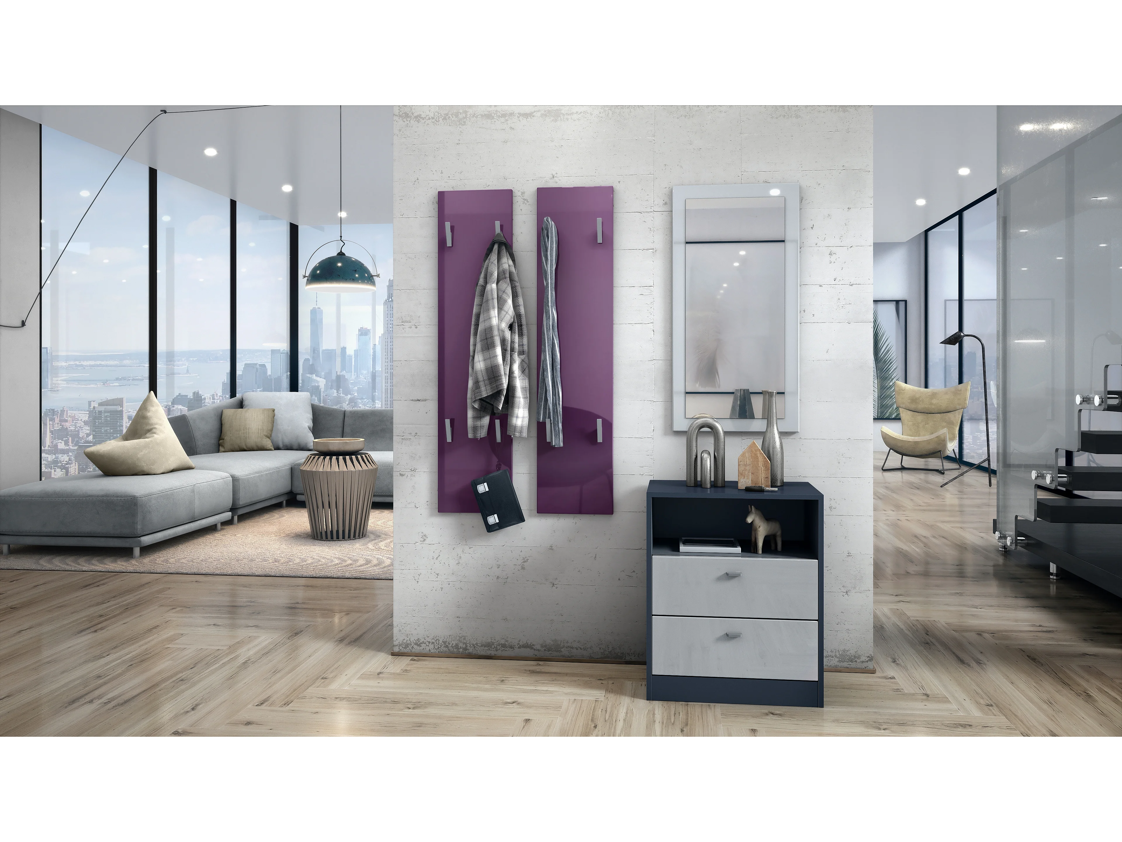 Panel de Pared 140, Hecho en Alemania, Panel Perchero con 2 Paneles, zarzamora de alto brillo (je 24 x 140 x 2 cm)