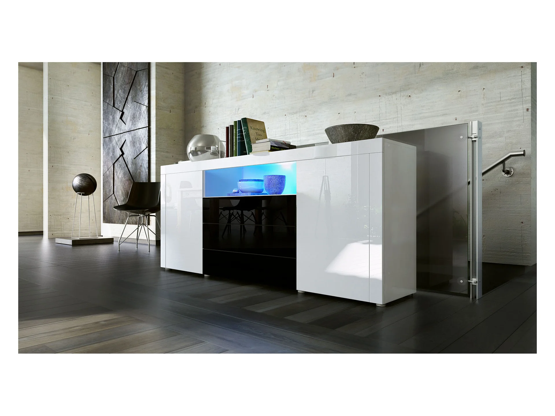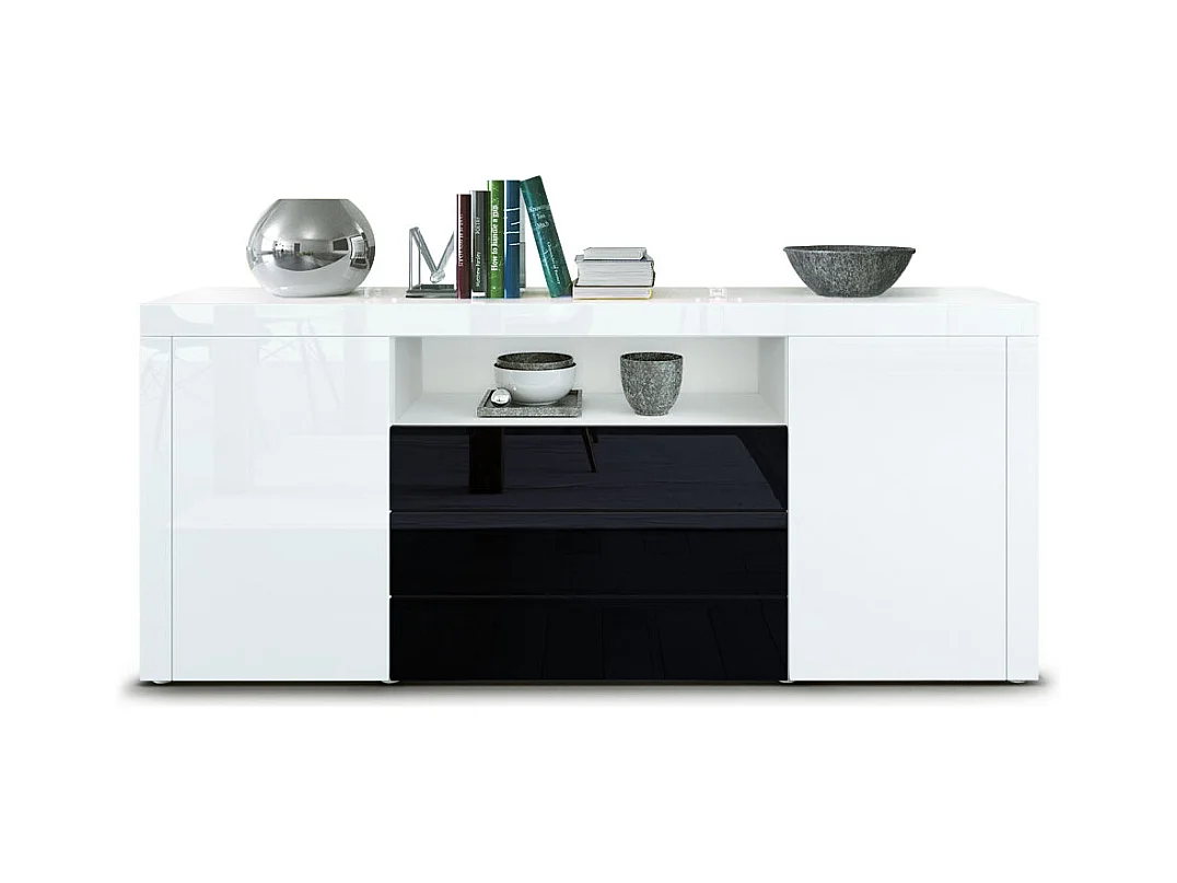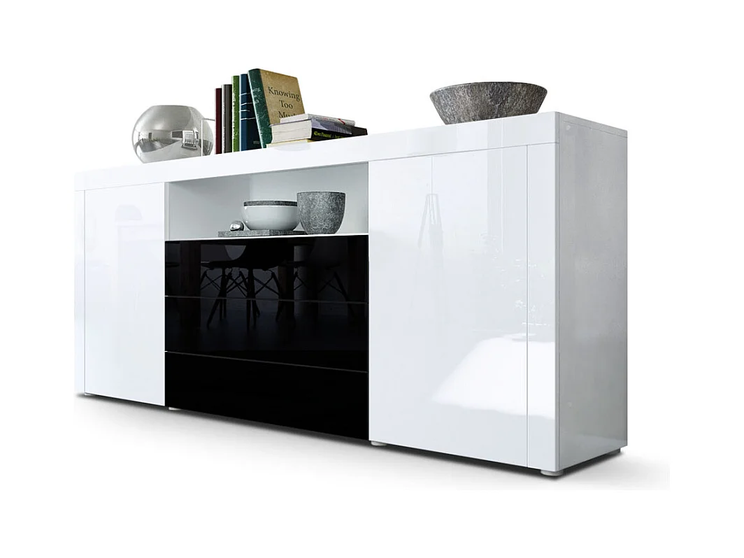 Vladon Sideboard Santiago, blanco de alto brillo/negro de alto brillo - Modern chest of drawers for your living area - (WxHxD) 167 x 72 x 35 cm
