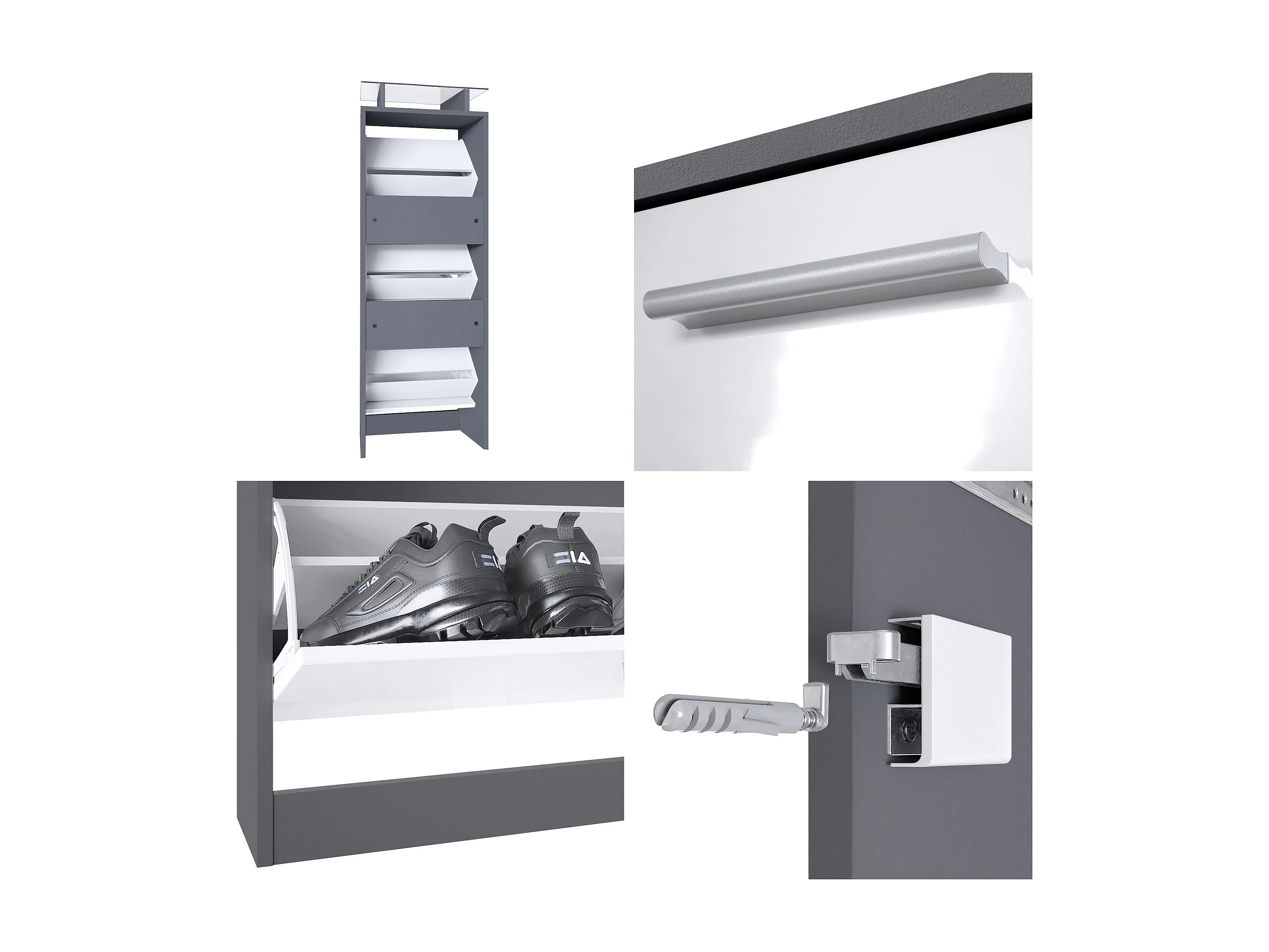 Zapatero Loret 89 x 104 x 23 cm, volquete de zapatos para 16 pares de zapatos , cuerpo en Anthracita mate, frente en Negro mate