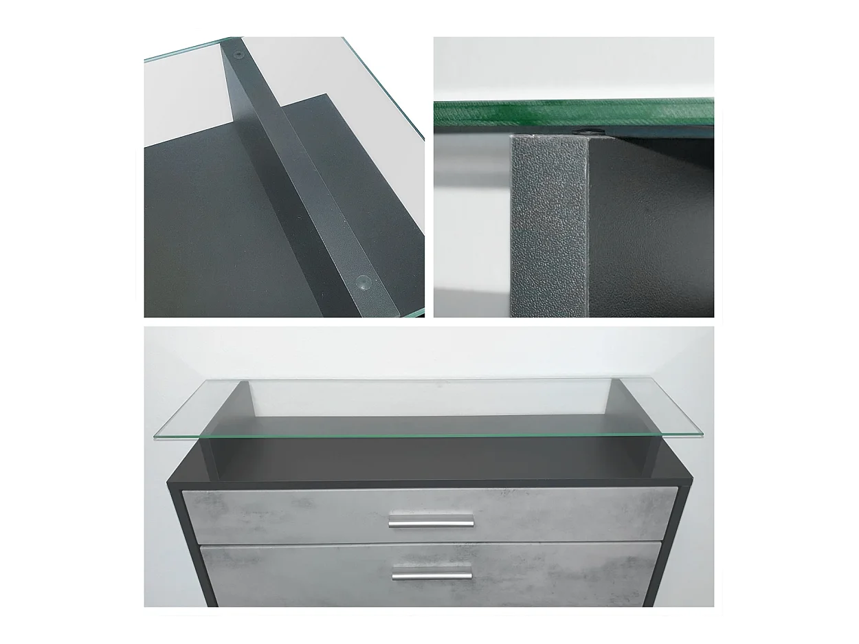 Mueble zapatero Vladon Malea, antracita mate/negro de alto brillo con LED - carro zapatero colgante para 16 pares de zapatos (89 x 96 x 23 cm)