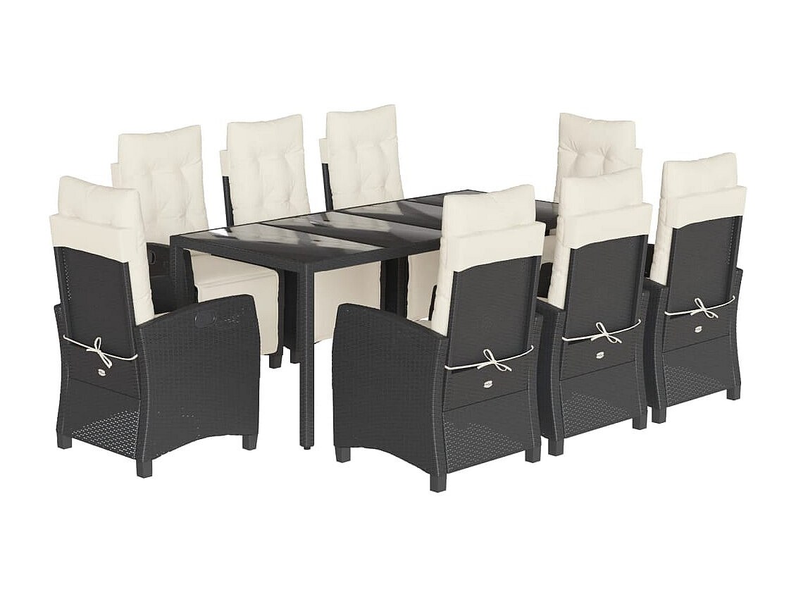 Garden Furniture - Set de comedor de jardín 9 pzas y cojines ratán sintético negro