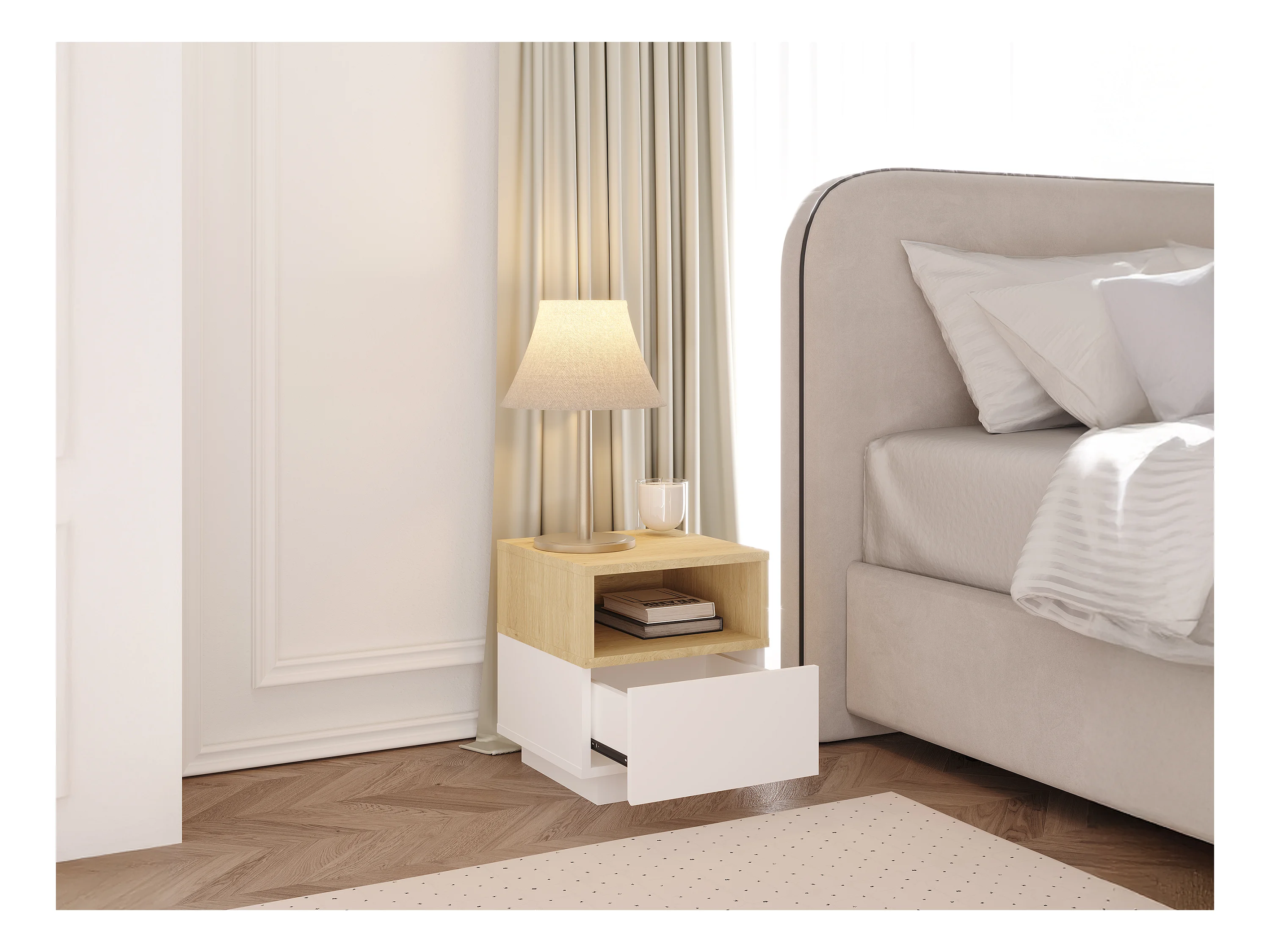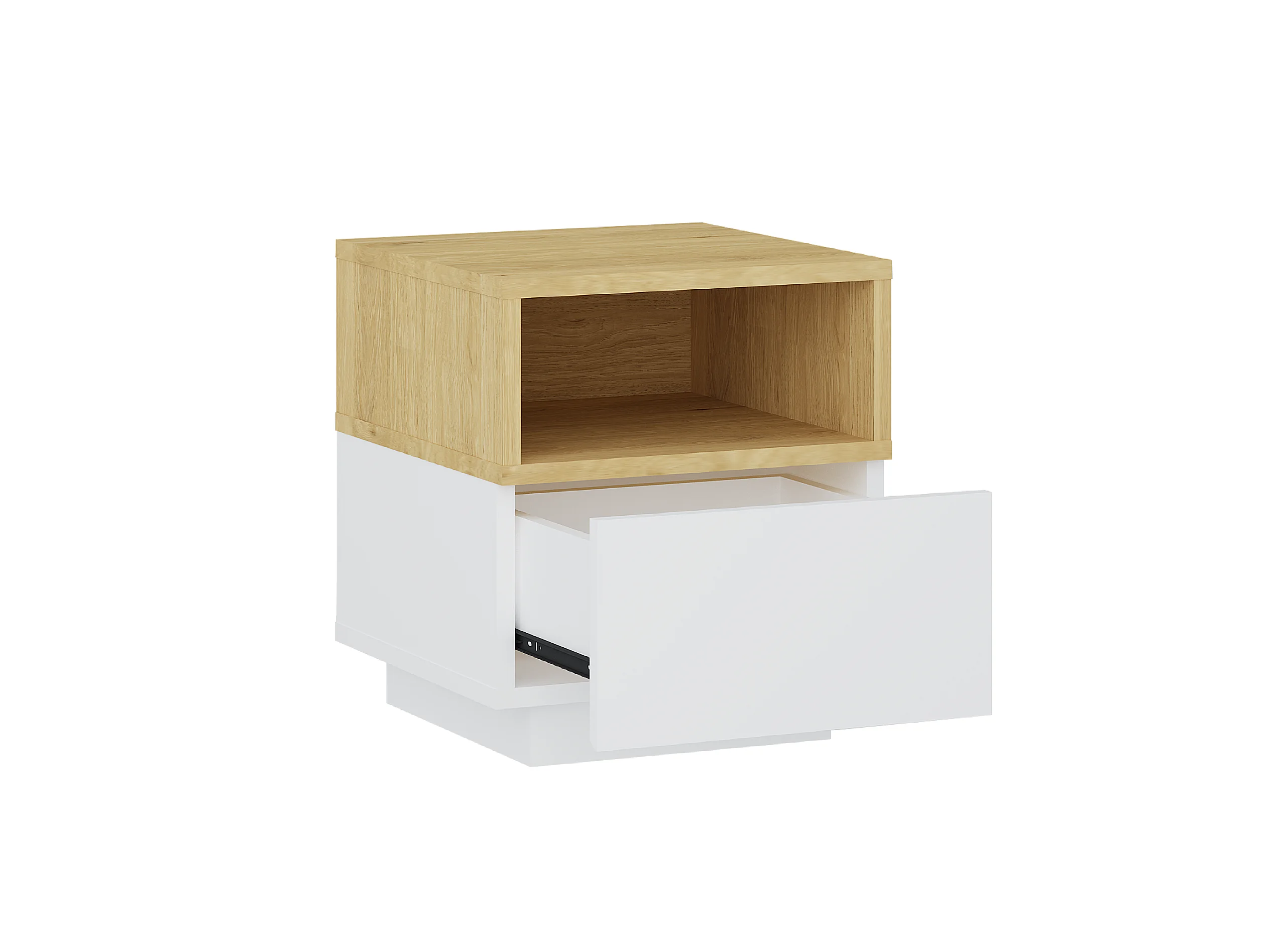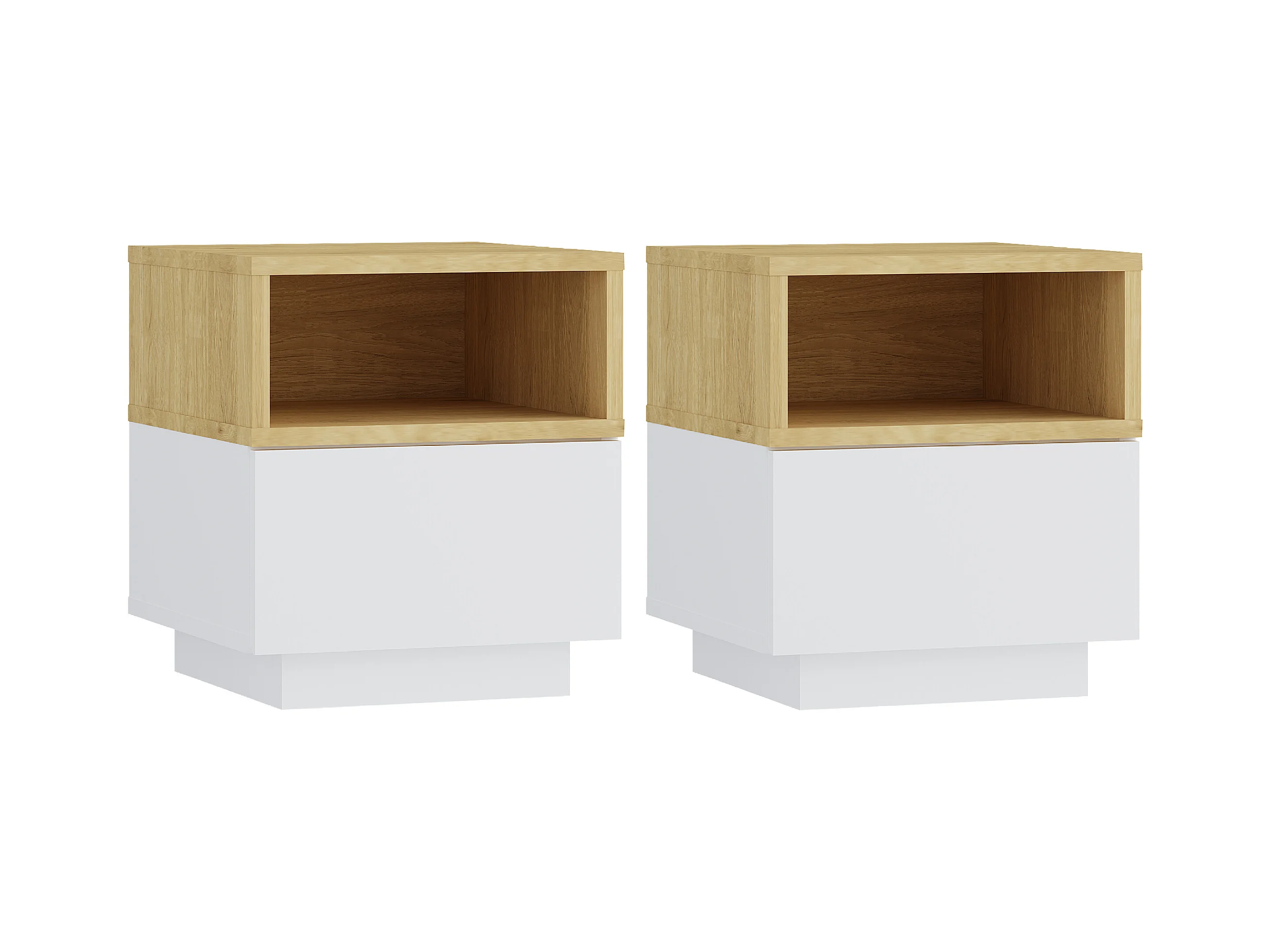 Conjunto de 2 mesitas de noche con 1 cajón y 1 estante - Blanco y natural - VYLARA