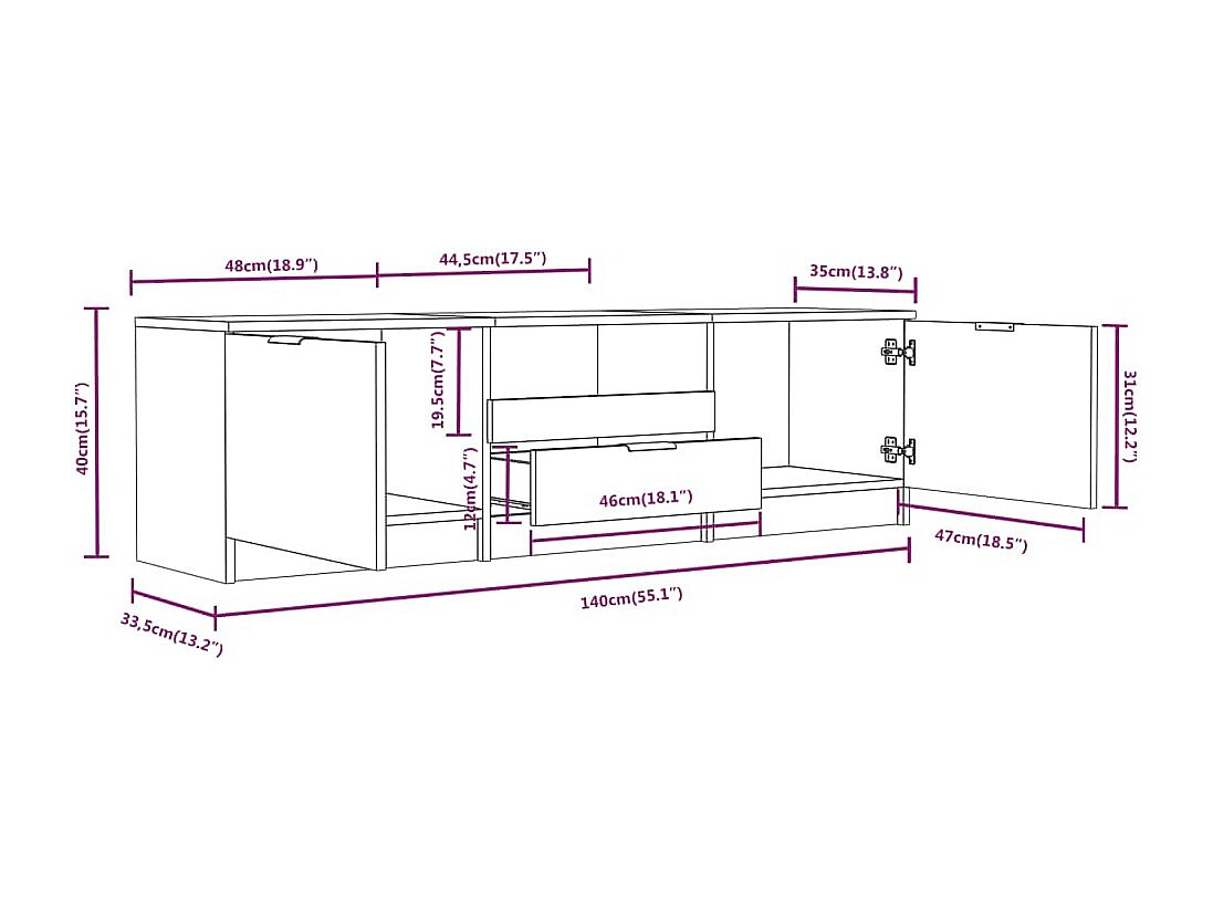 Waldor Mueble de TV blanco 140x35x40 cm madera de ingeniería