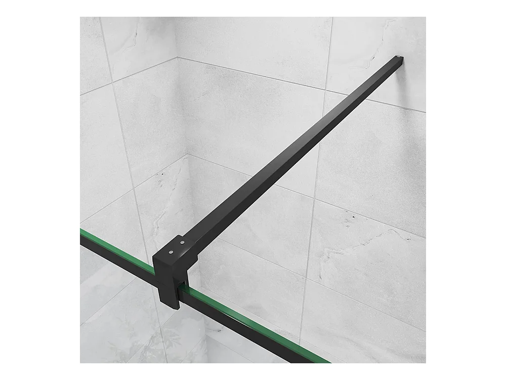 Walkin Mampara Panel de ducha borde de serigrafía negra Vidrio Antical 8mm con Barra 140cm Perfil Negro Mate (138-140)x200cm-AICA