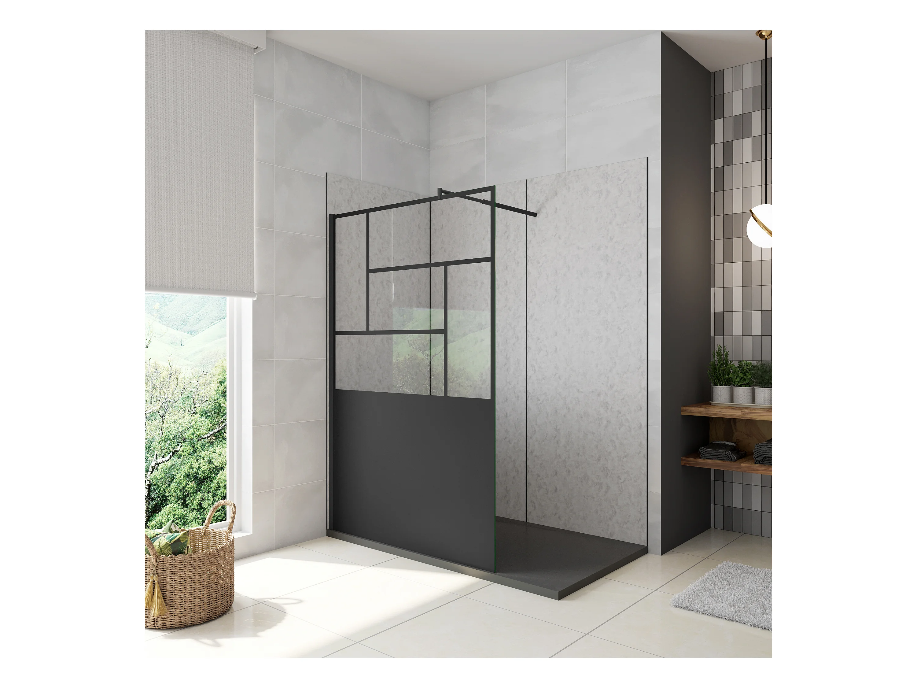 Walkin Mampara Panel de ducha Pantalla Panel Fijo estilo industrial Cristal Antical 8mm con Barra 70-120cm Perfil Negro Mate,(977-1000)x2000mm-AICA