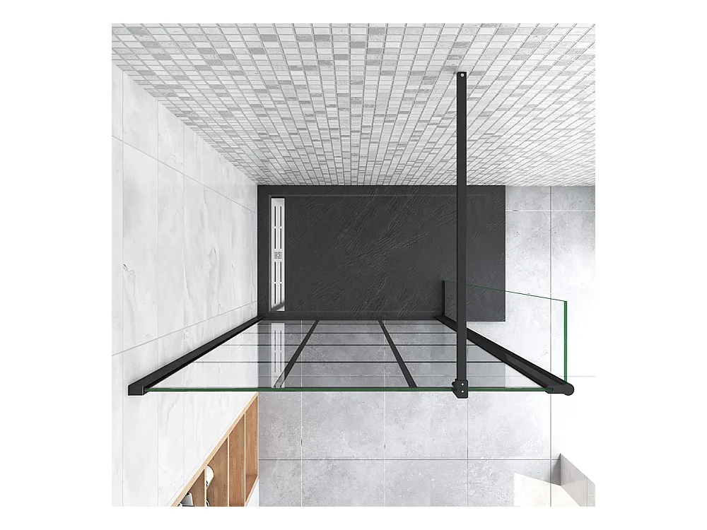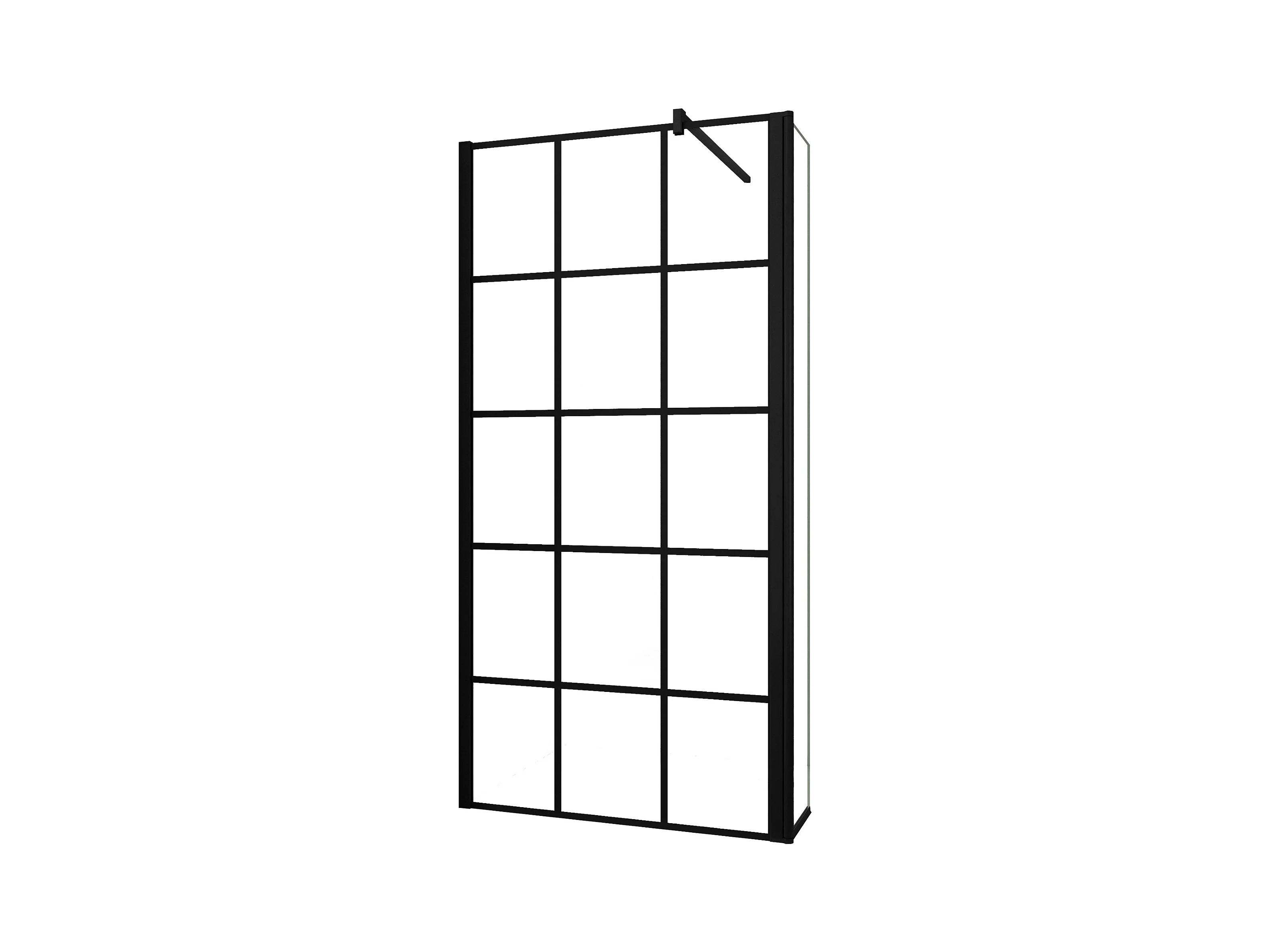 Walkin Mampara Panel de ducha Serigrafiado de celosía cuadrada 2 hojas Vidrio 8mm Antical con Barra Negra mate 140cm Tamaño[(93.9-95.9)+30]x200cm-AICA