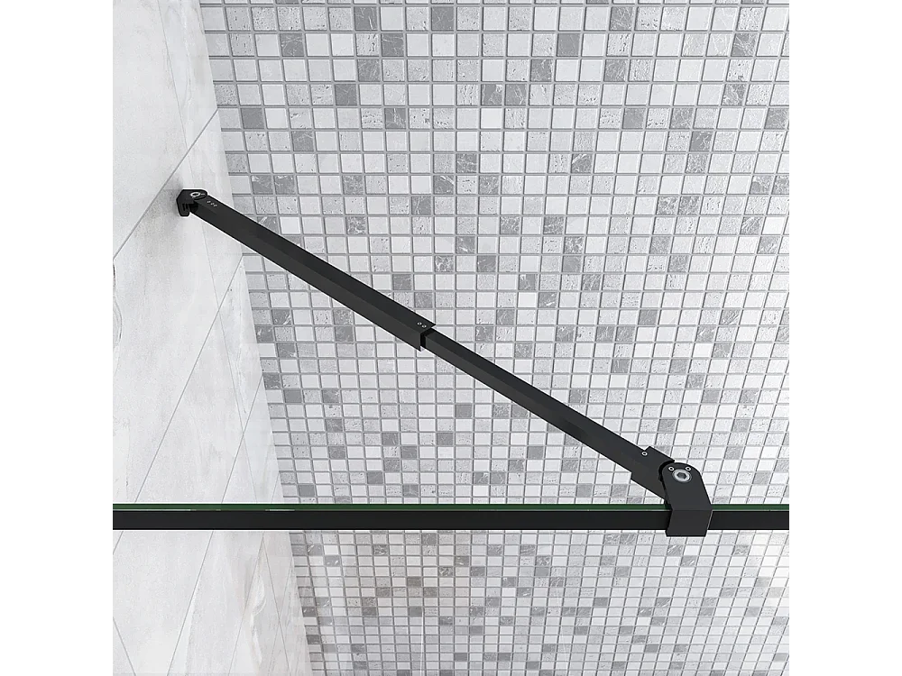 Walkin Mampara Panel de ducha Serigrafiado de celosía cuadrada 2hojas Vidrio 8mm Antical con Barra Negra 73-120cm Tamaño[(103.9-105.9)+40]x200cm-AICA