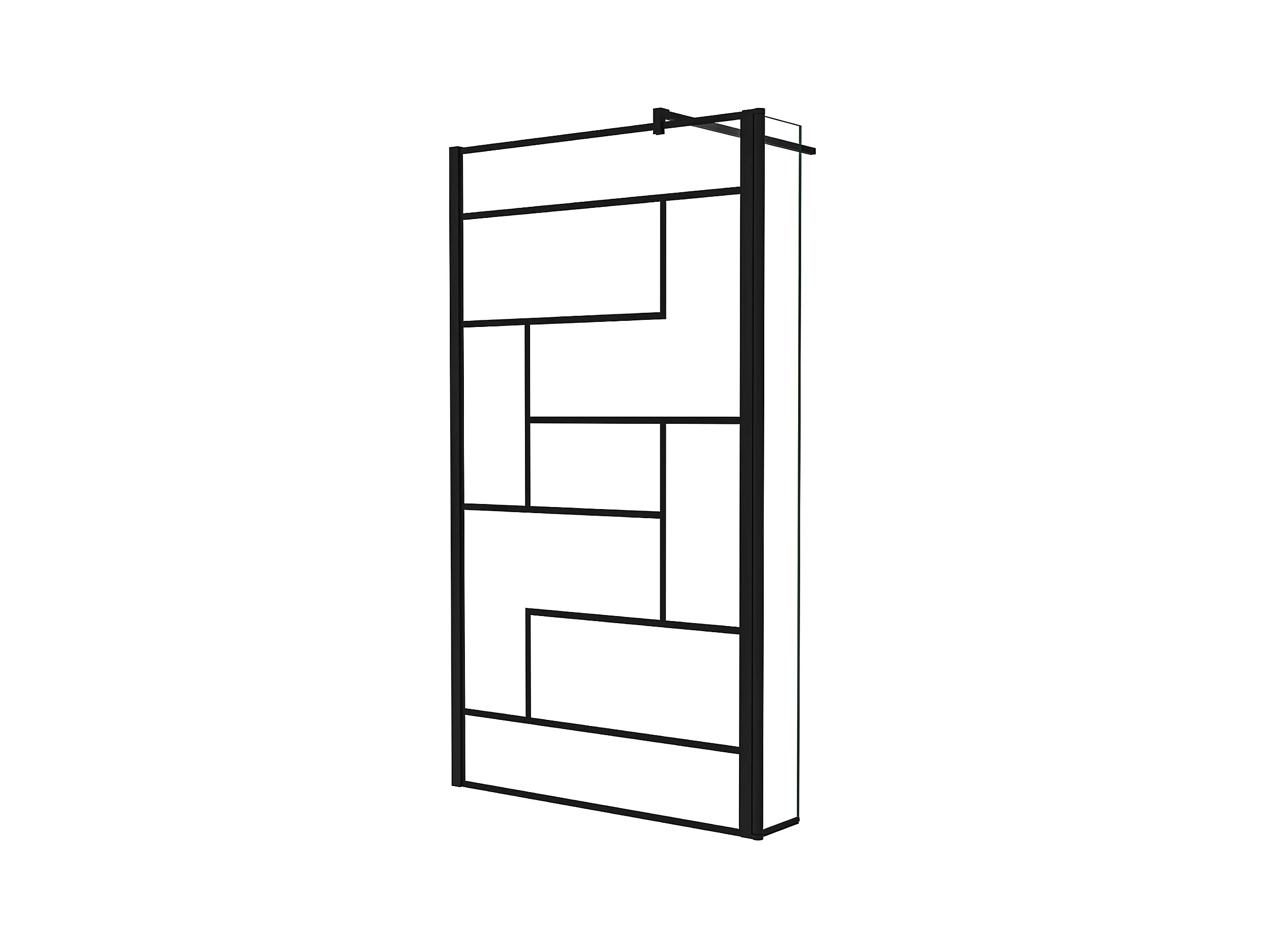 Walkin Mampara Panel de ducha Serigrafiado de celosía cuadrada 2 hojas Vidrio 8mm Antical con Barra Negra mate 90cm Tamaño[(93.9-95.9)+40]x200cm-AICA
