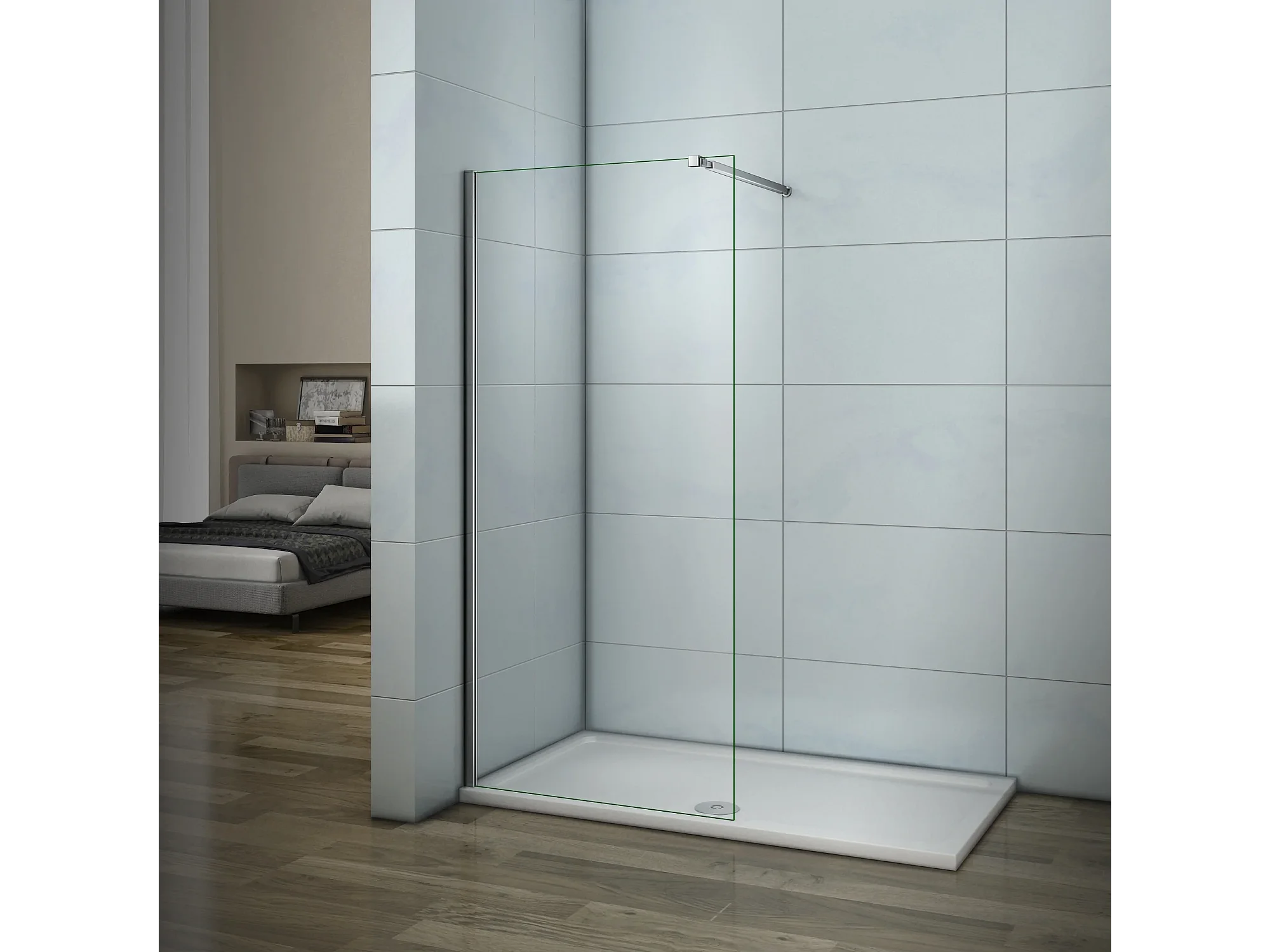 Walkin Mampara Panel de ducha Vidrio Templado 6mm con Tratamiento Antical Perfil Cromado con una Barra ajustable 73-120cm (74.8-76.8)x195cm-AICA