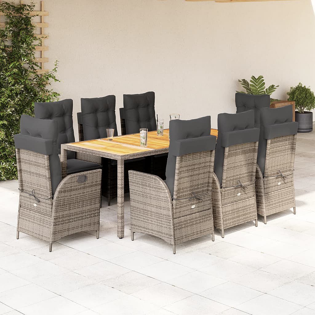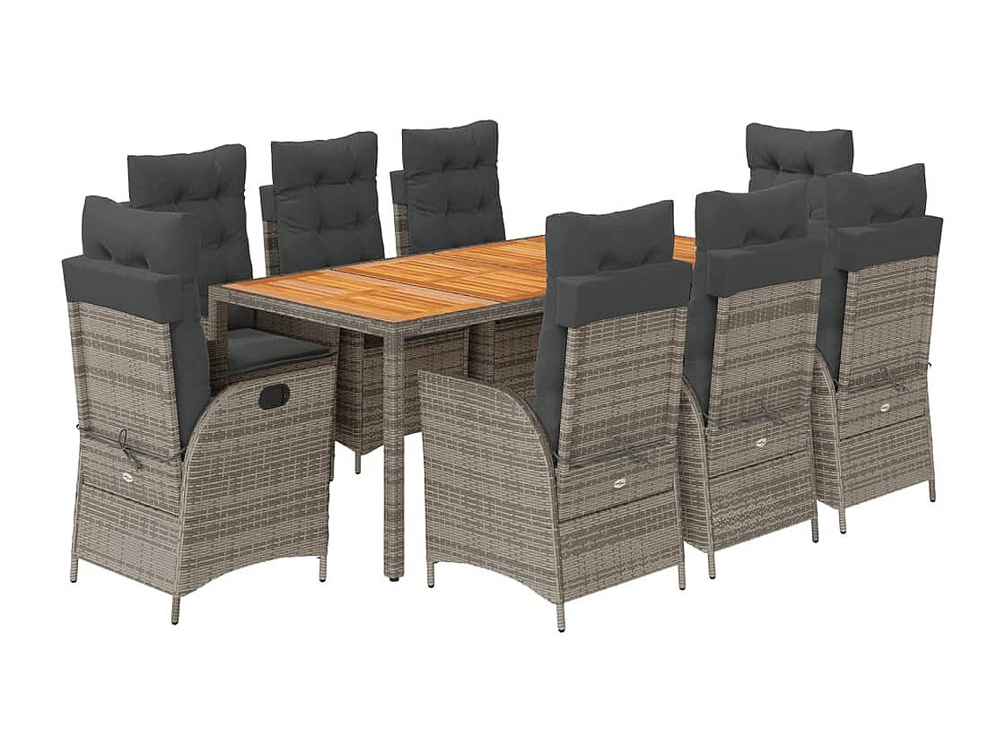 Wanda Set comedor jardín 9 pzas y cojines ratán sintético gris