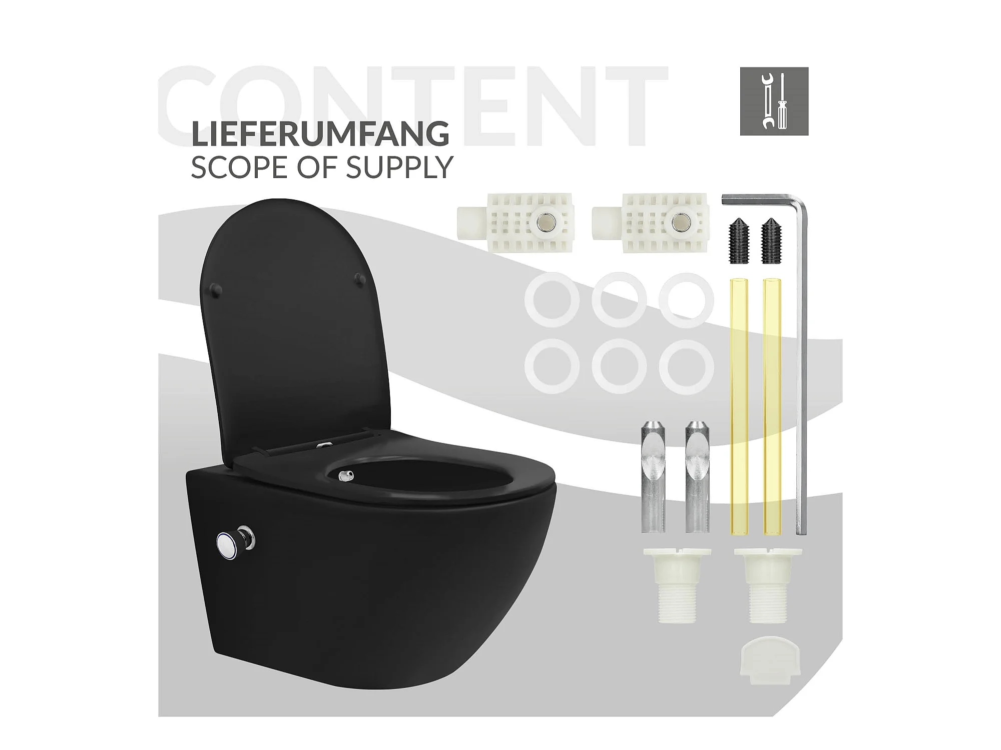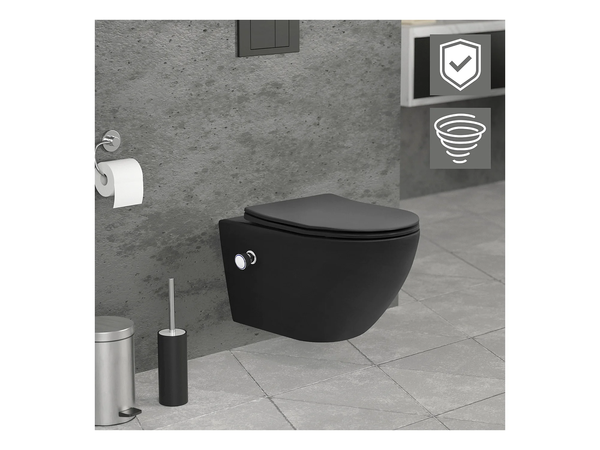 WC cerámico suspendido negro con función bidé y tornado largo 53,5 cm softclose
