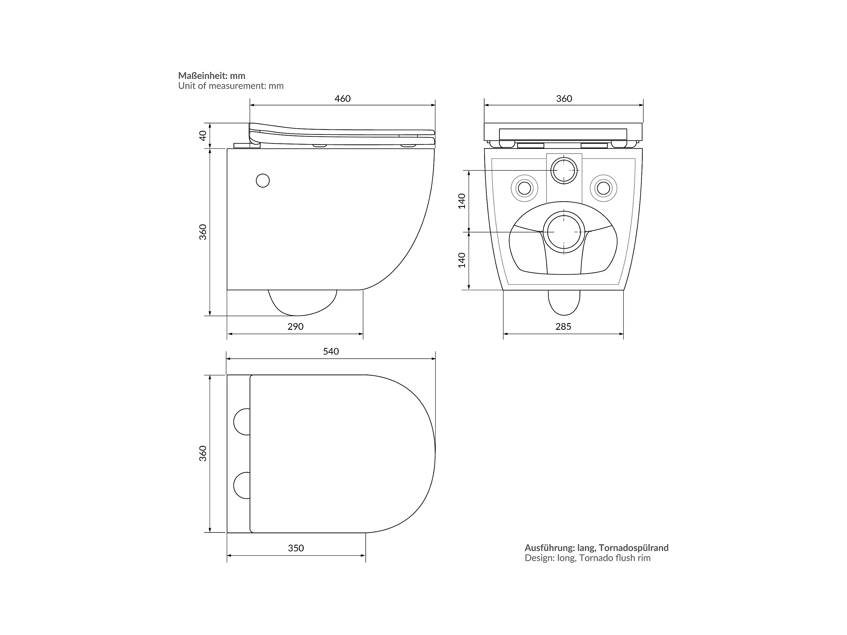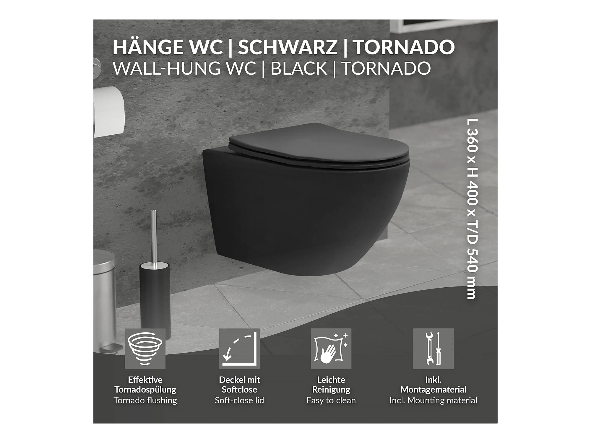 Inodoro suspendido corto nano flush tornado negro con asiento de inodoro Softclose