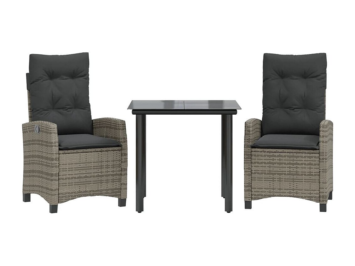 Garden Furniture - Set comedor de jardín 3 piezas con cojines ratán sintético gris
