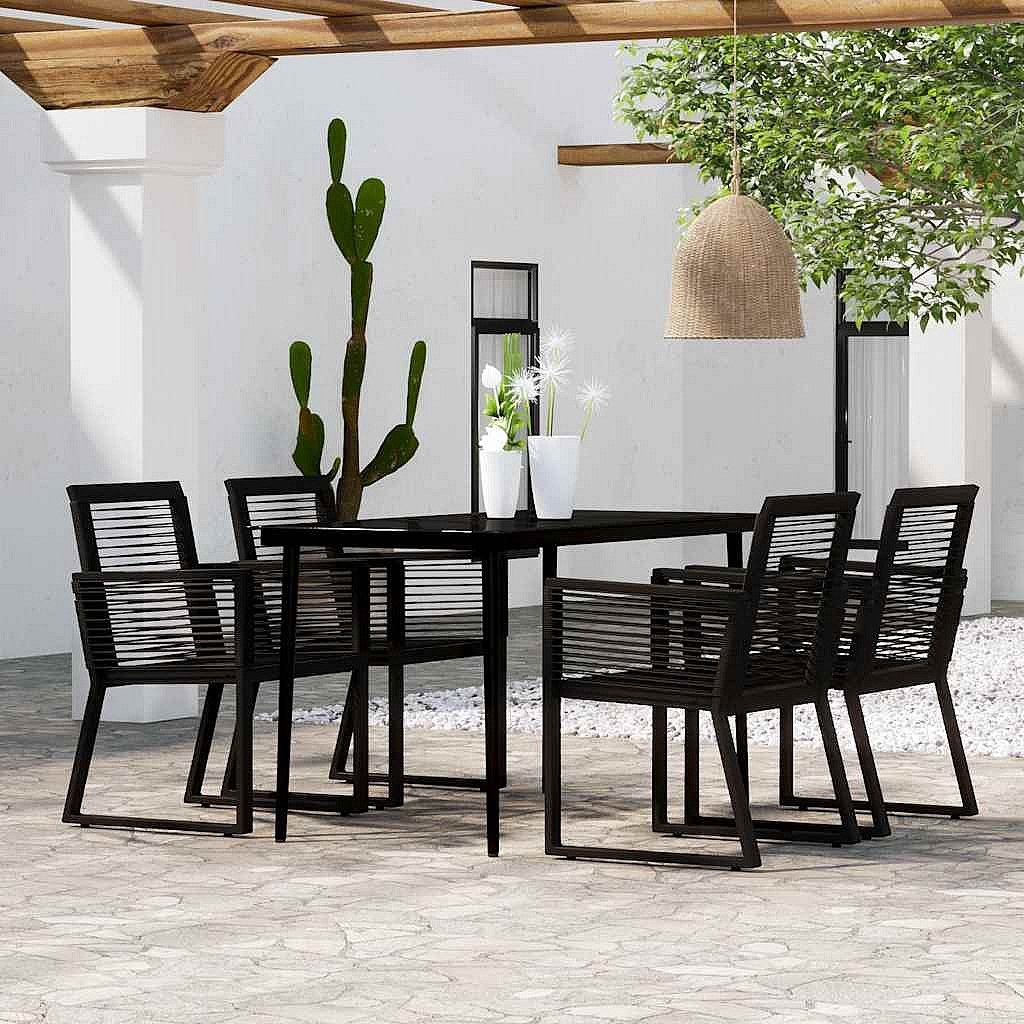 Ayisha Juego de comedor de jardín 5 piezas ratán PVC negro