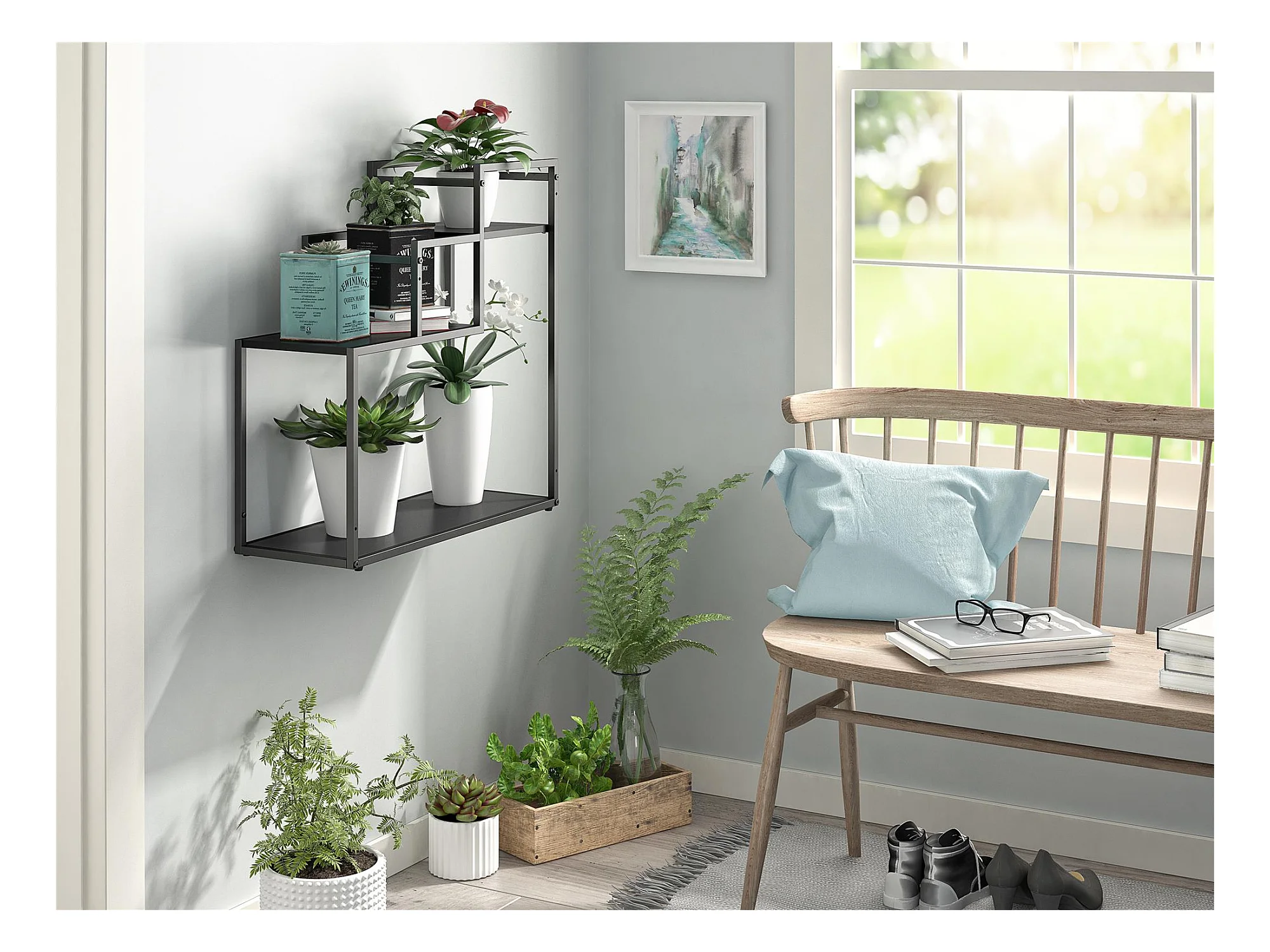 Soporte de metal con 3 maceteros de metal negro 80x26x68