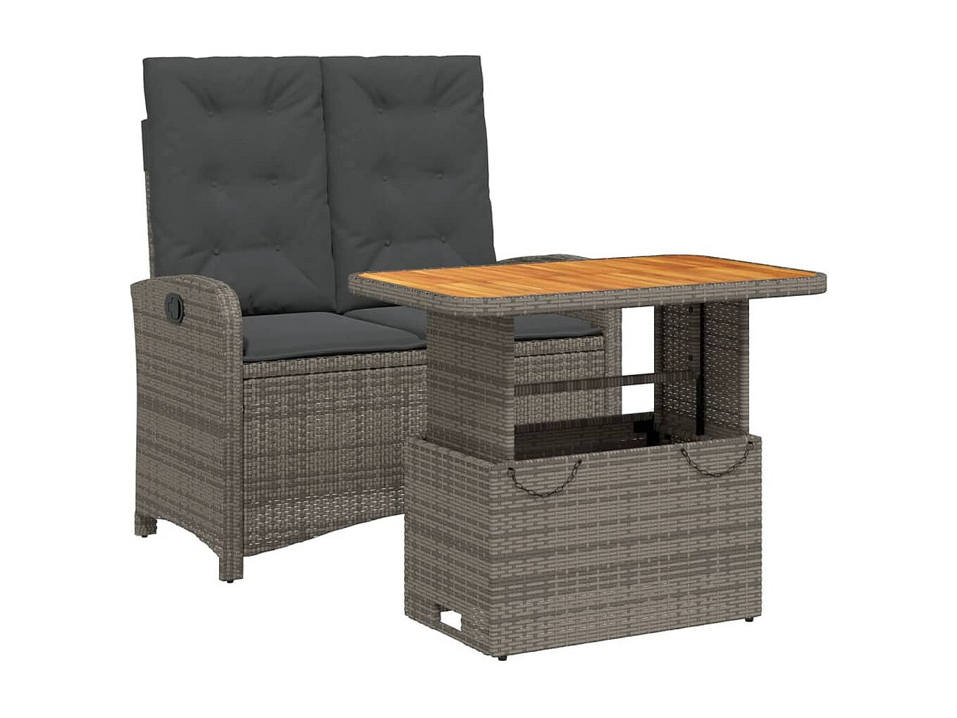 Myrvin Juego de comedor jardín 2 pzas con cojines ratán sintético gris