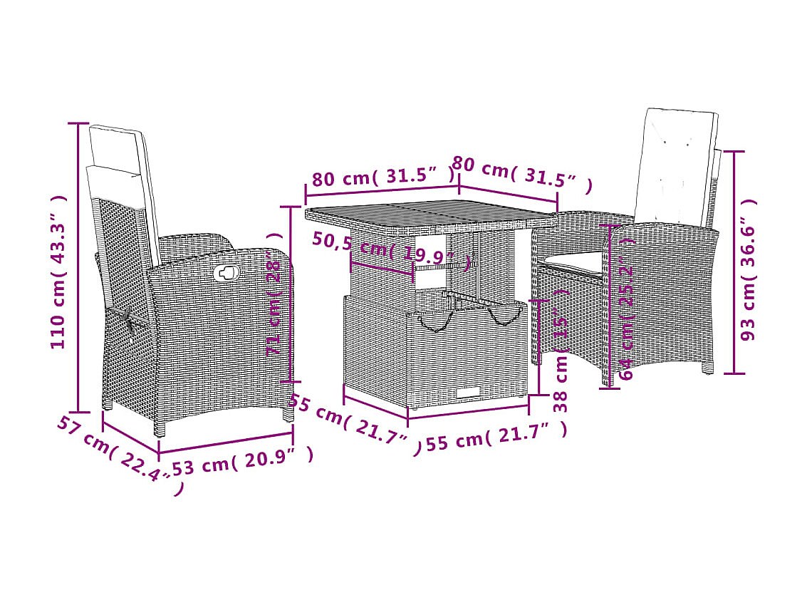 Wise Set comedor de jardín 3 piezas con cojines ratán sintético gris