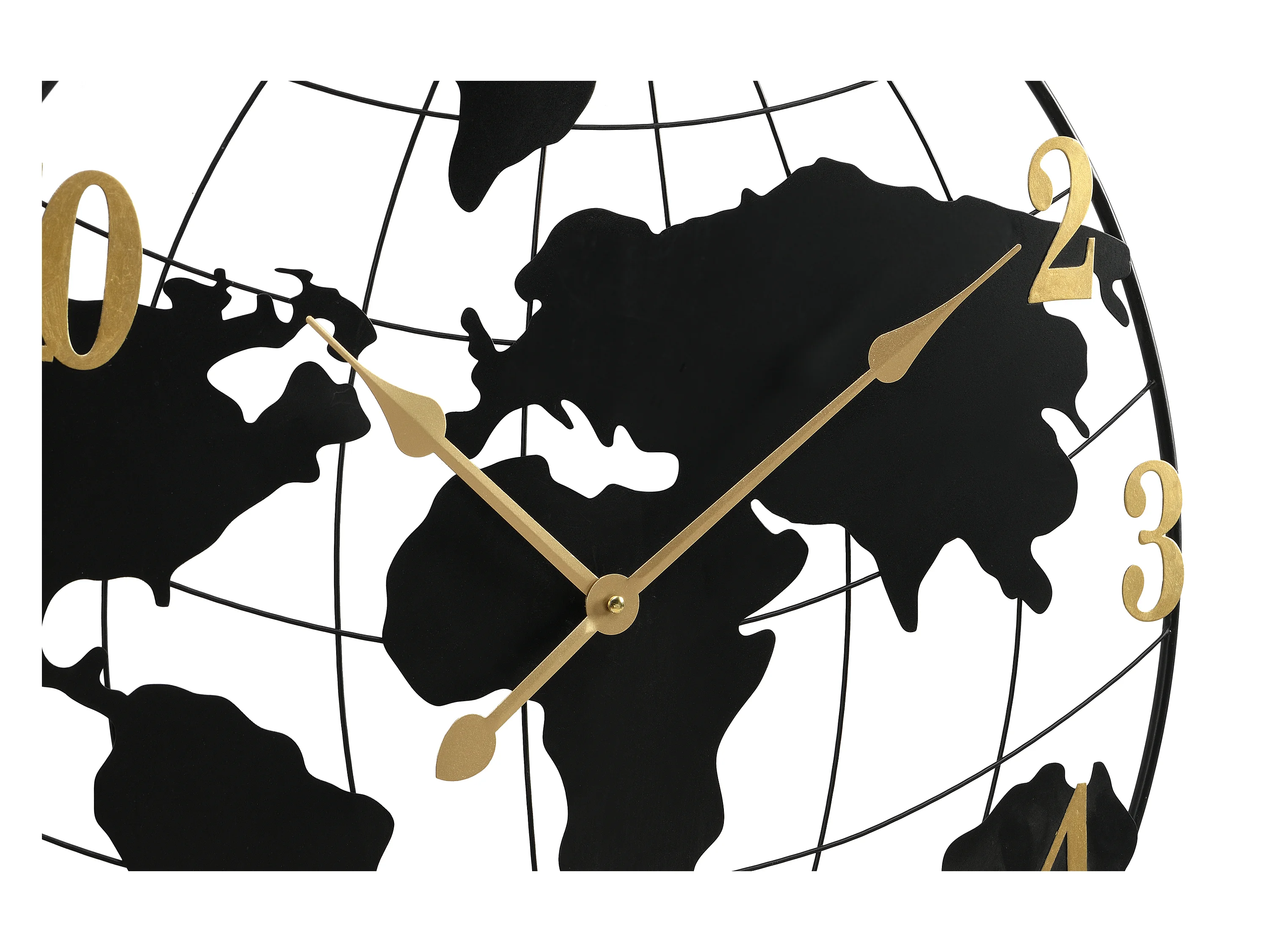 Reloj de pared mapamundi de metal - D.60 cm - Negro y dorado - WORDIA