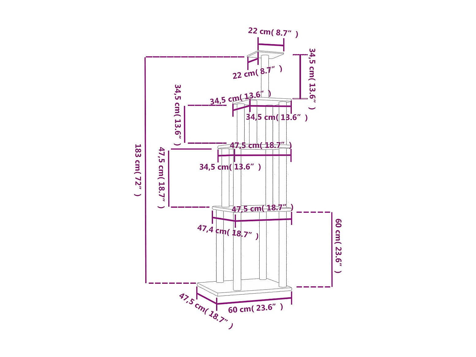 Rascador para gatos con postes de sisal gris claro 183 cm ES349020