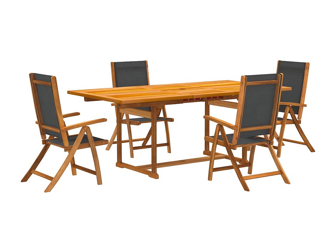 Yljo Juego comedor de jardín 5 pzas madera maciza acacia y textileno