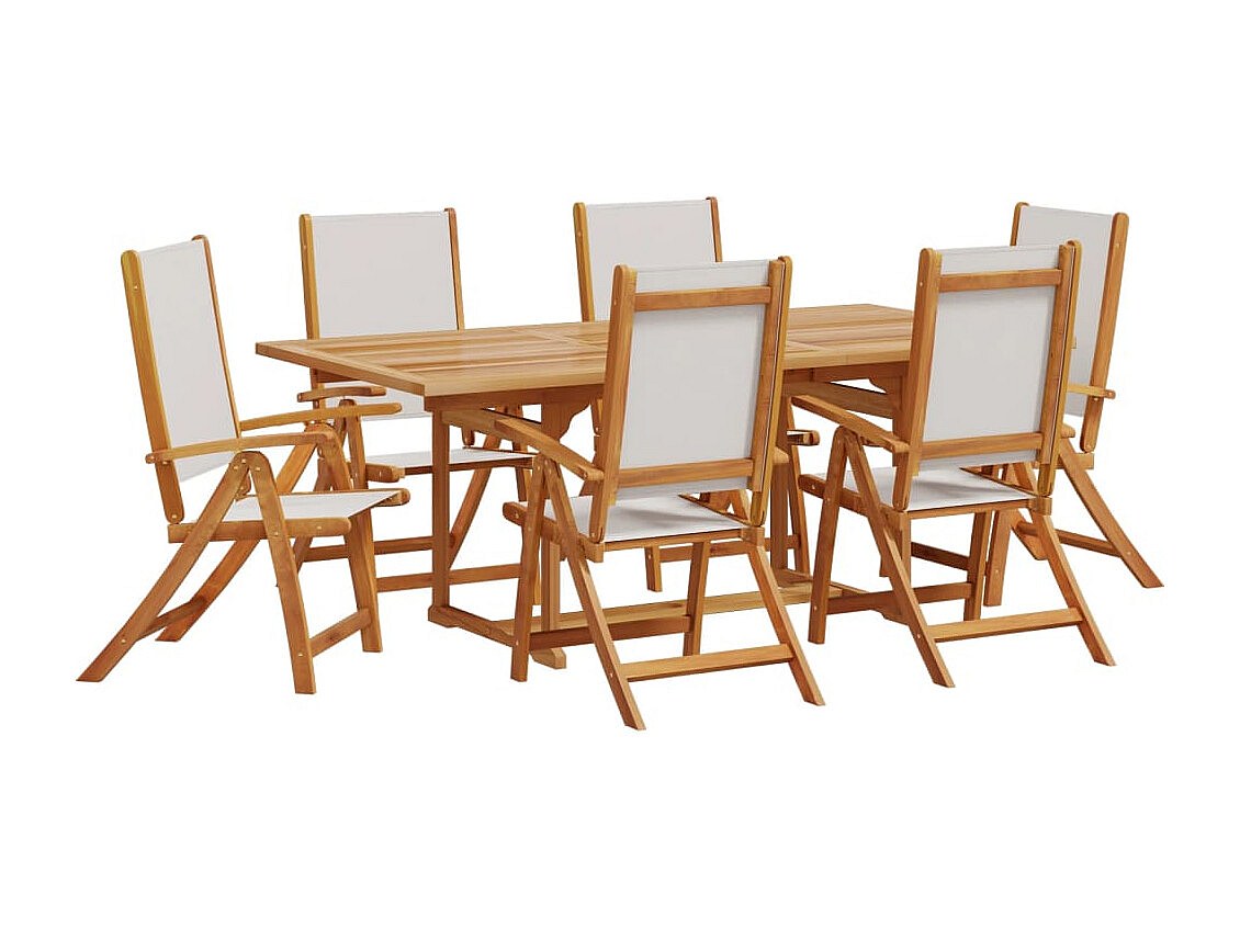 Yljo Juego comedor de jardín 7 pzas madera maciza acacia y textileno