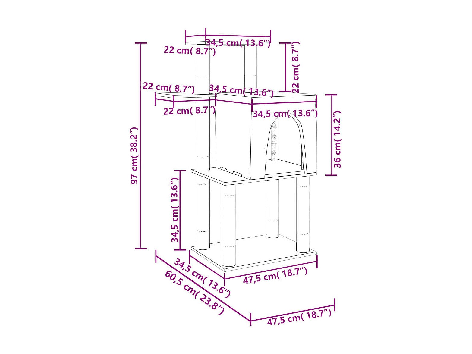 Mathis-Paul Rascador para gatos con postes de sisal color crema 97 cm