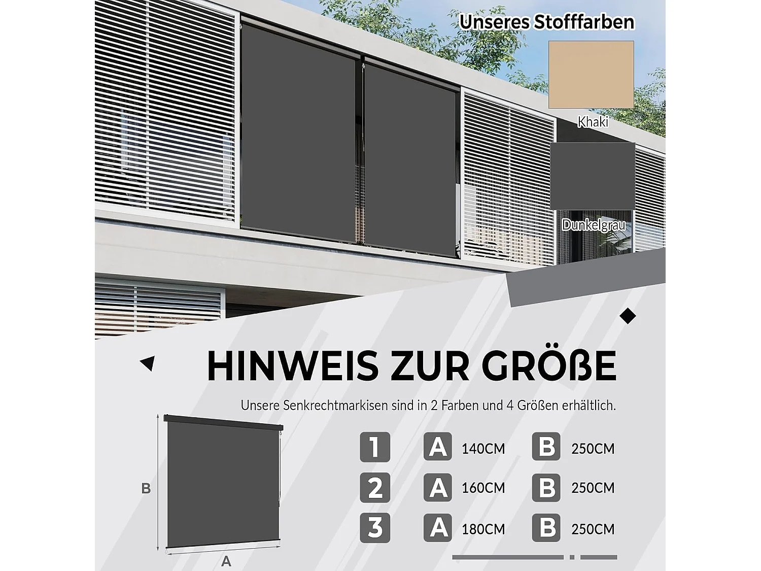 YODOLLA Toldo Vertical 140x250cm, Extensible Con Manivela, Protección Solar Resistente A La Intemperie Para Jardín Y Balcón, Gris