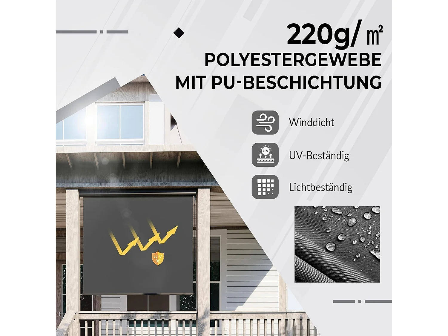 YODOLLA Toldo vertical 180x250cm, Toldo vertical extensible con manivela, Protección solar resistente al clima para jardín y balcón, Gris