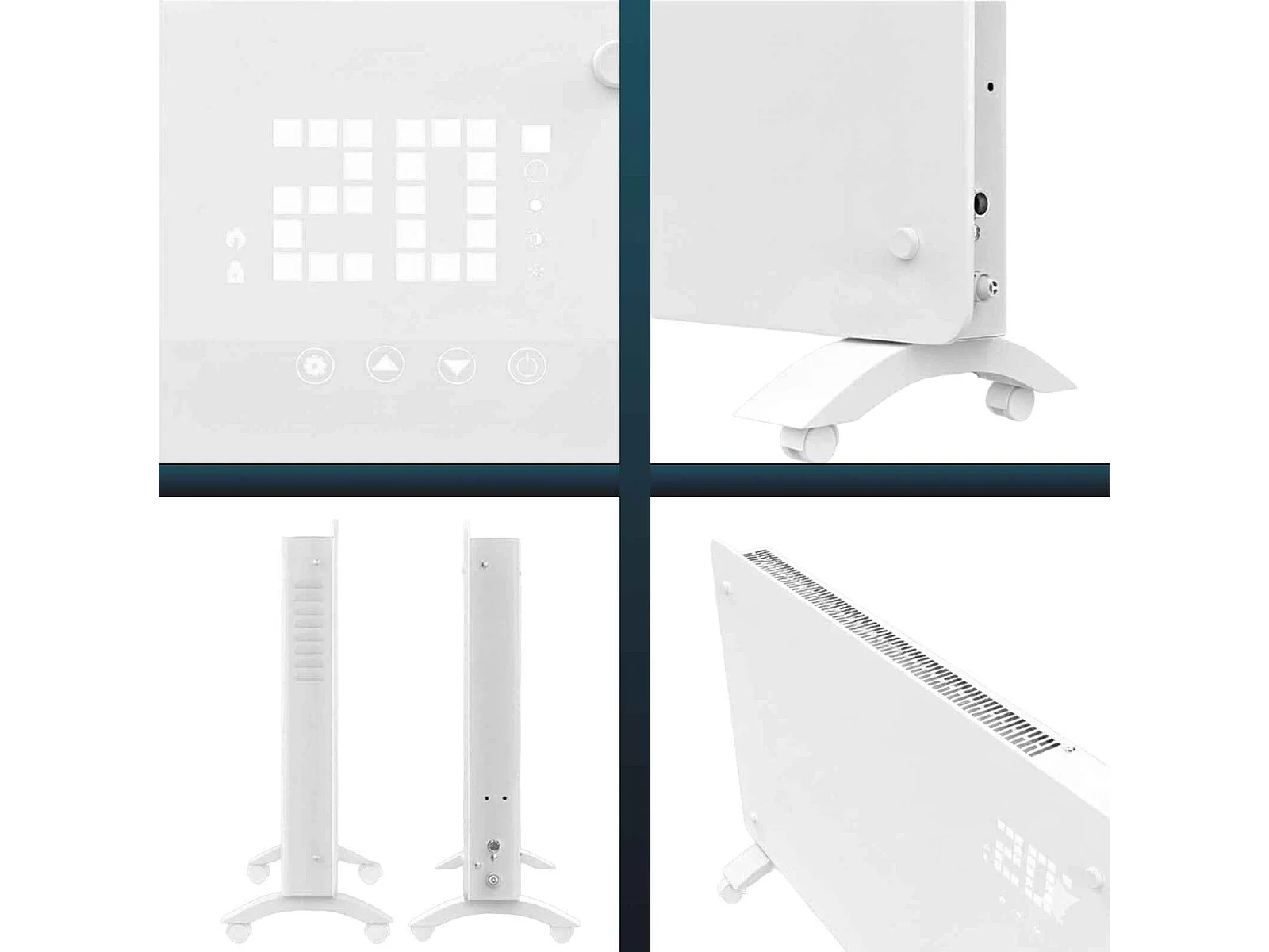 YOEVU - Emisor térmico de cristal 2500W , temporizador 24 horas, soporte con ruedas, 2 modos de potencia