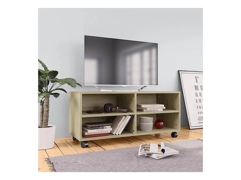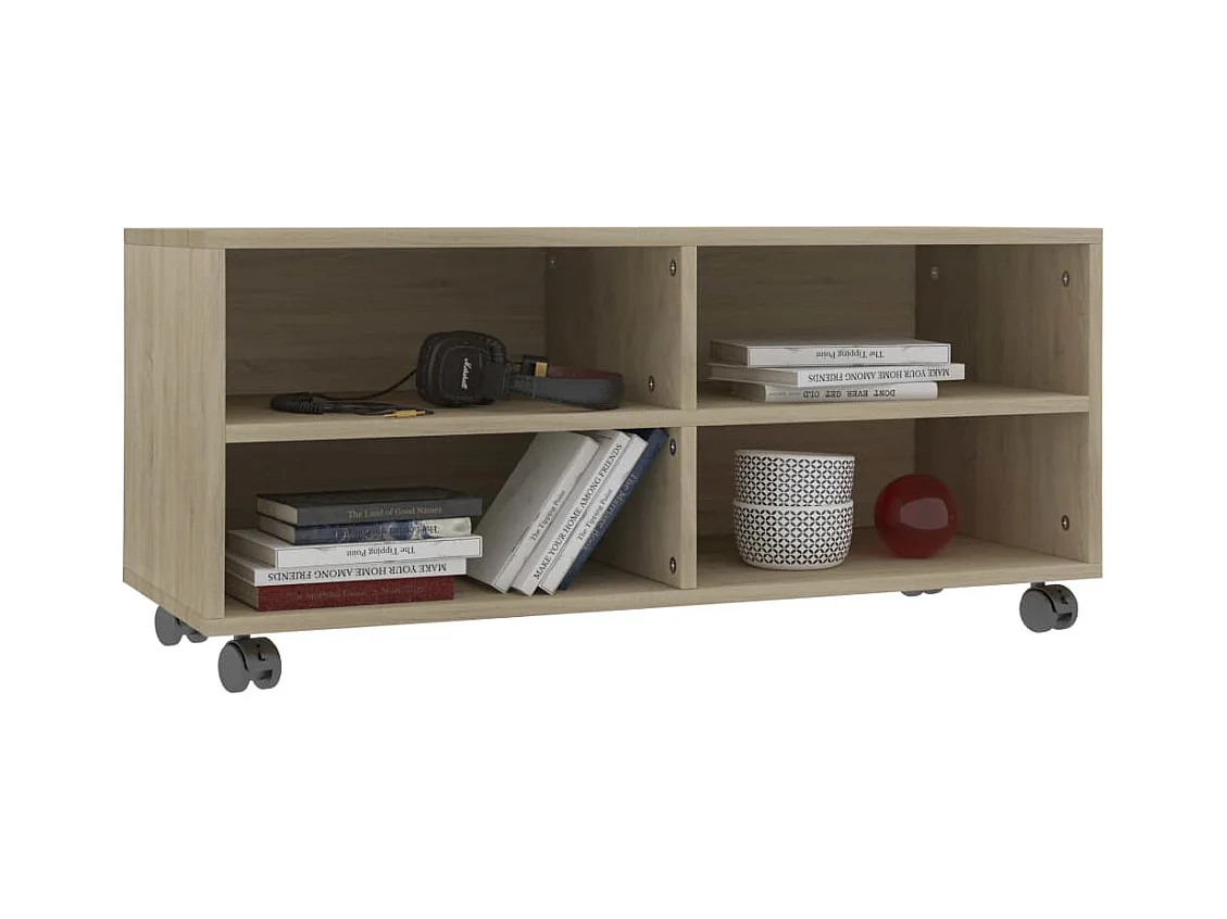 Yron Mueble de TV ruedas madera contrachapada color roble 90x35x35cm