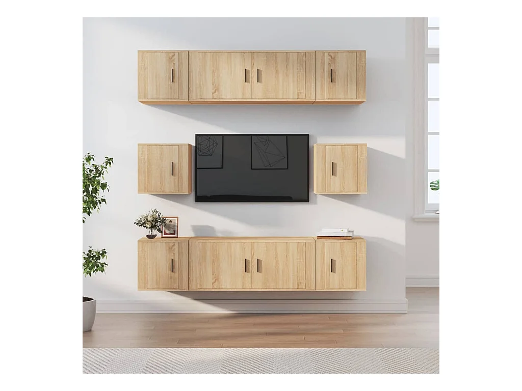 Ywar Set de muebles para TV 8 pzas madera contrachapada roble Sonoma