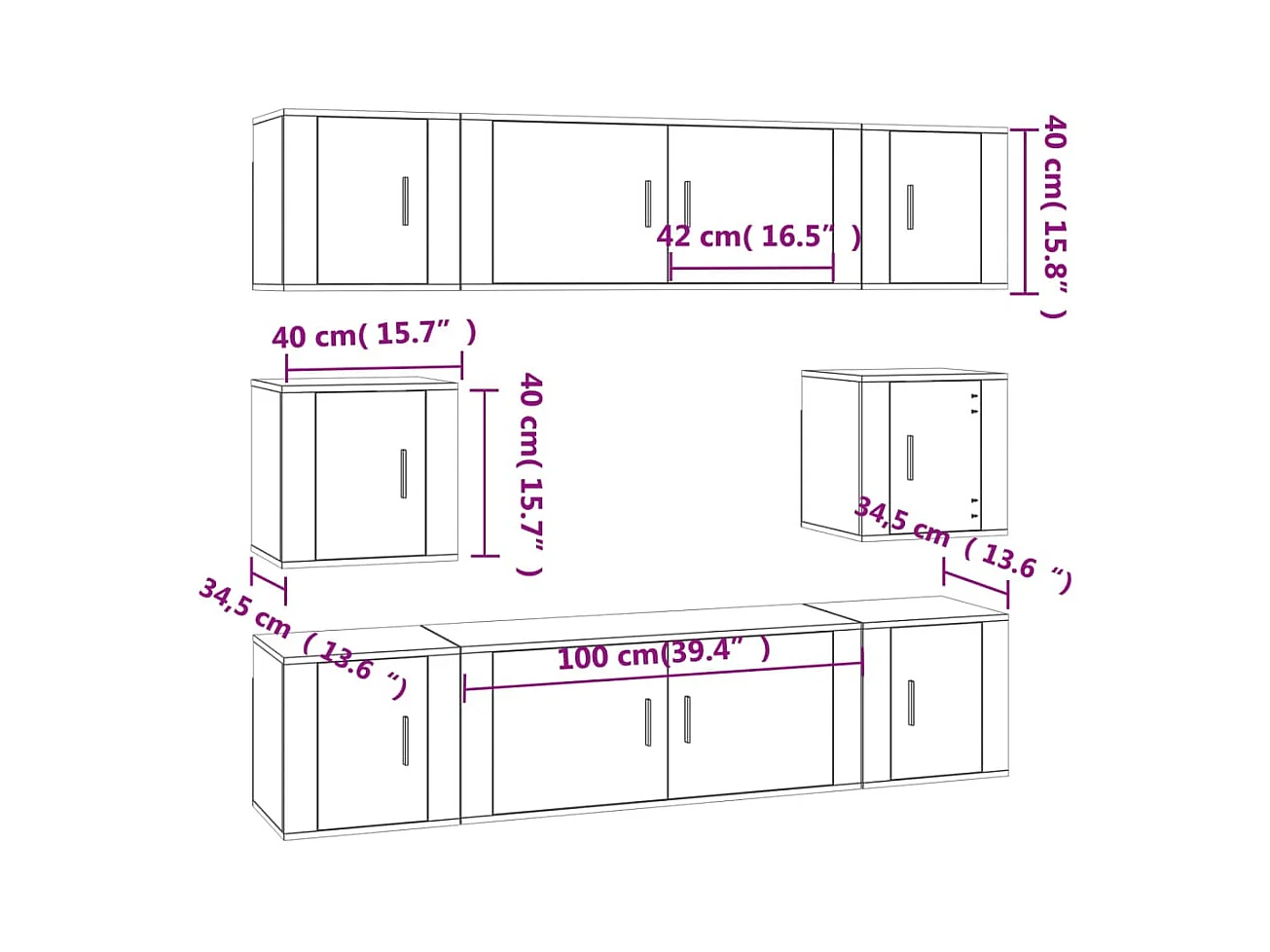 Las Cruces Set de muebles para TV 6 pzas madera contrachapada roble sonoma