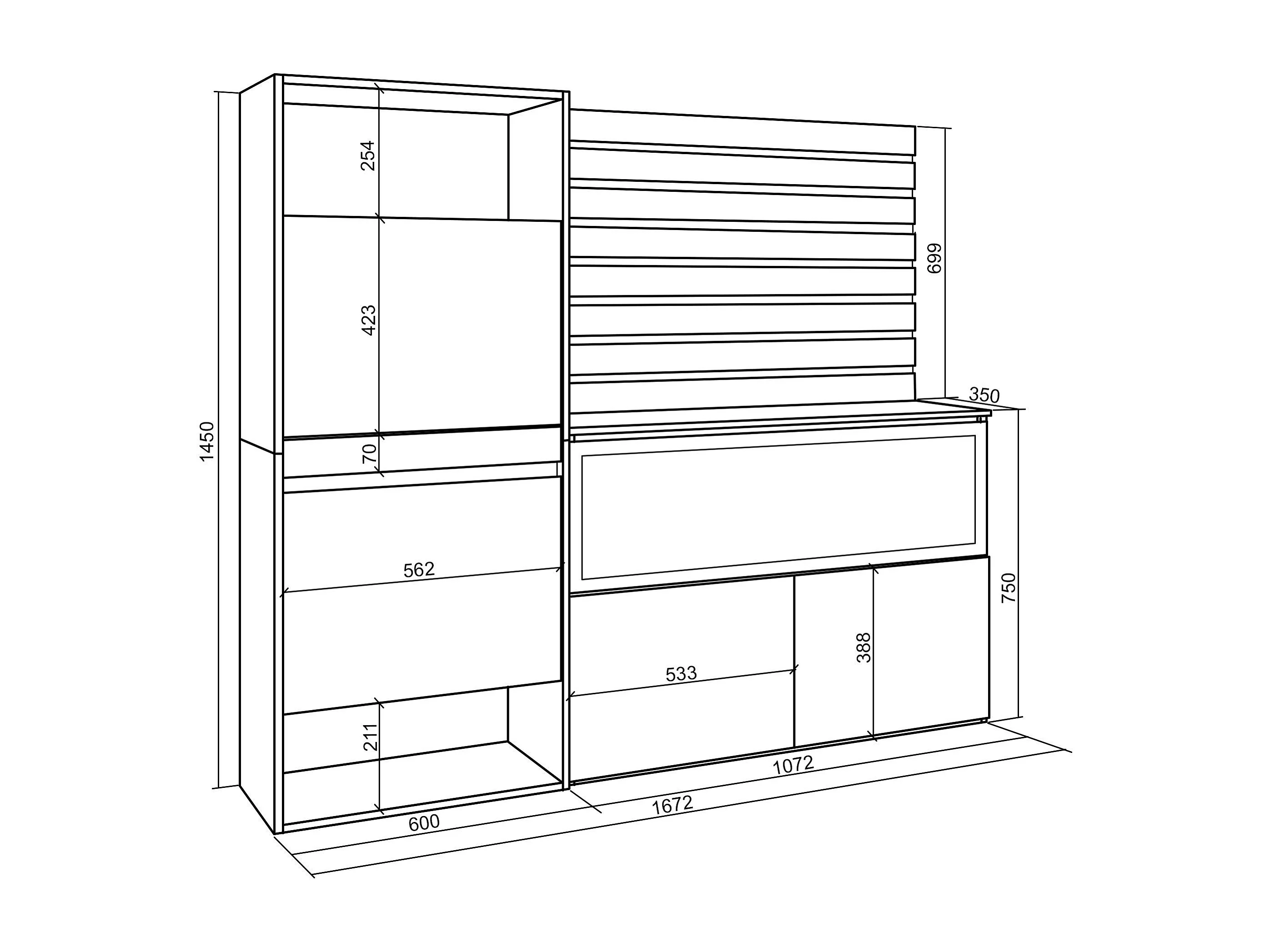 Zapatero, 167x35x145cm, Dormitorio, habitación, Chimenea eléctrica XXL, Listones Decorativos, Cemento