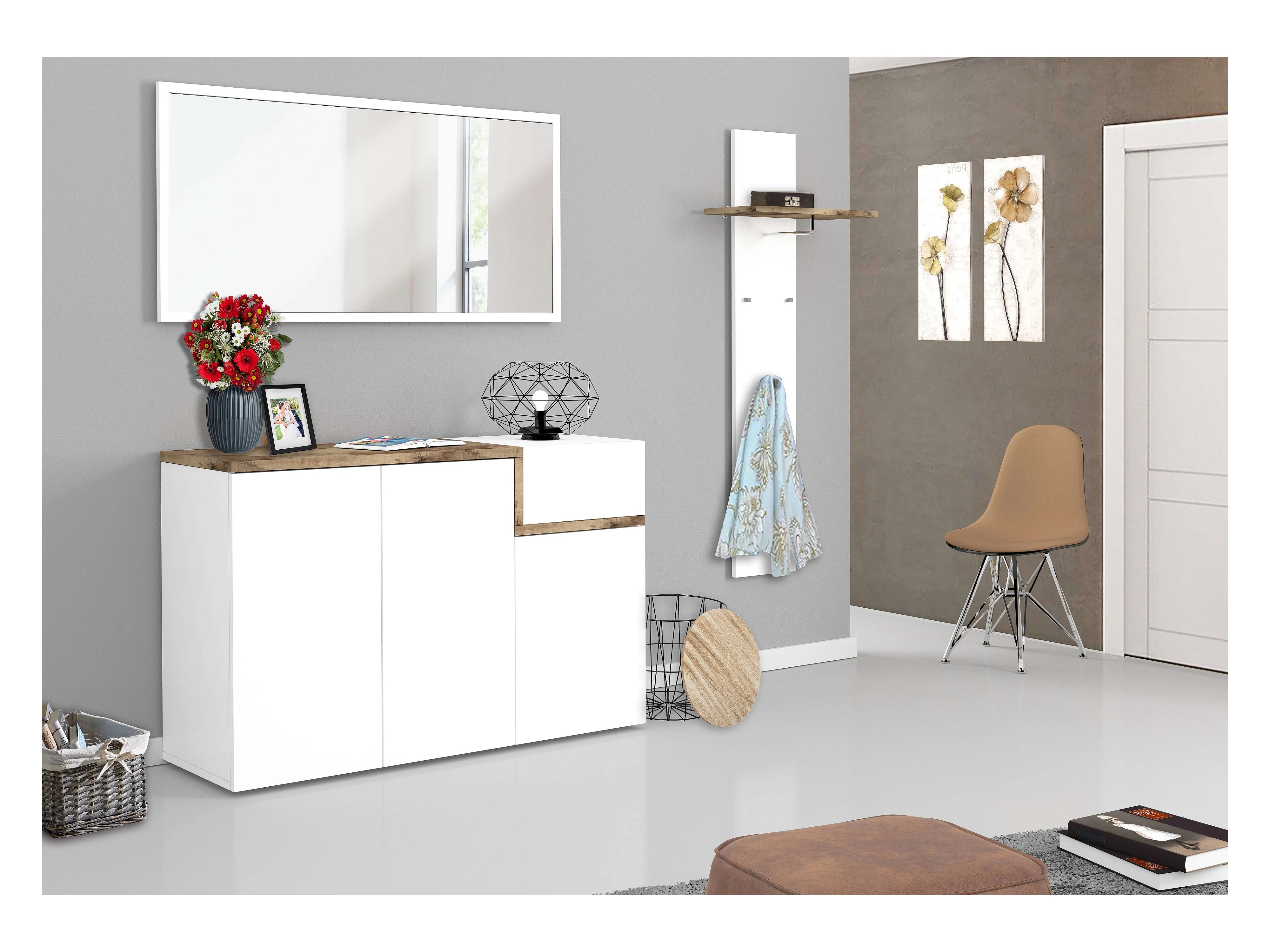 Aparador Sumbra, Despensa de salón, Aparador de salón moderno con 2 puertas, 120x40h102 cm, Blanco y Roble