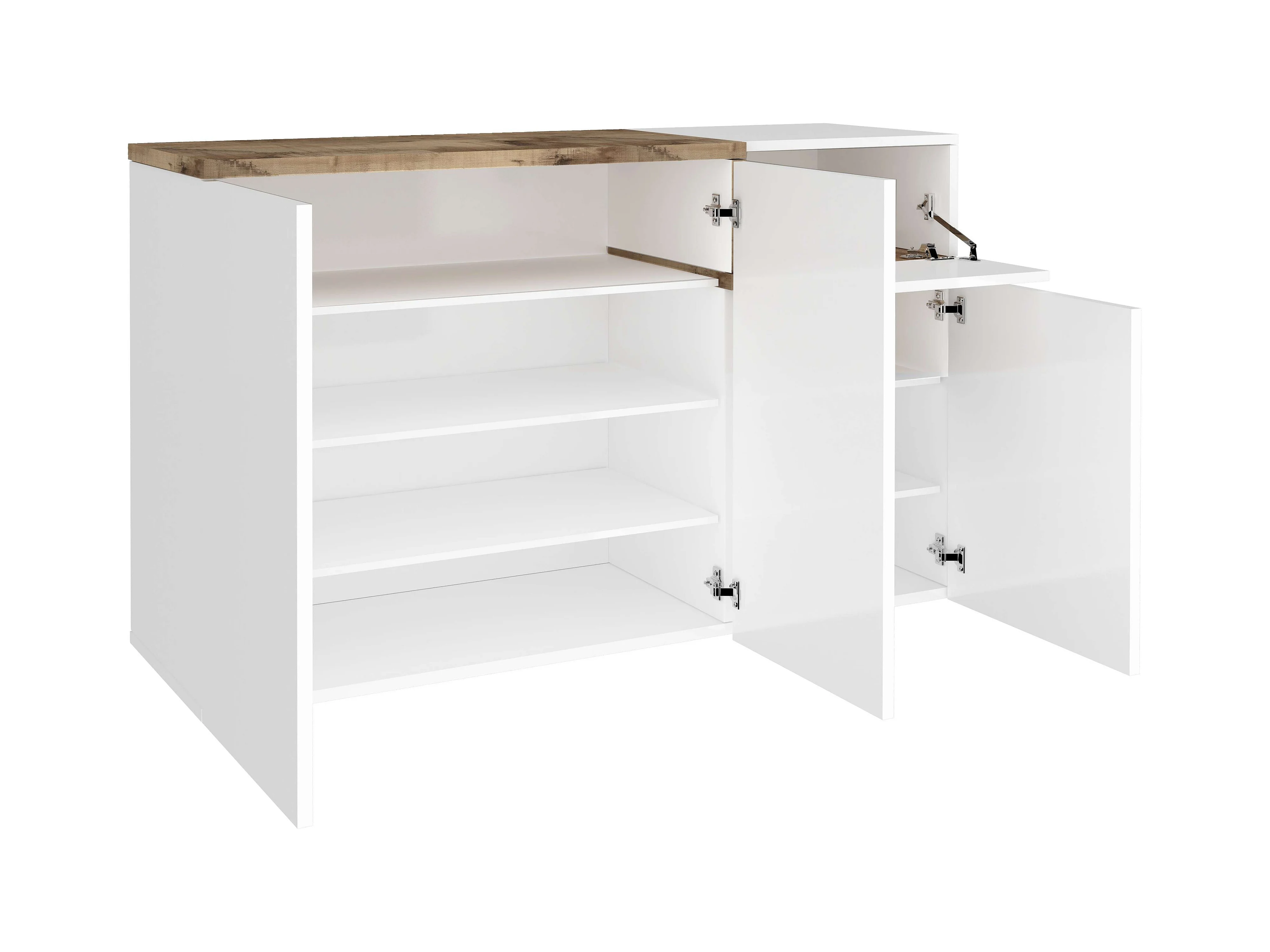 Aparador Pavel, Aparador de cocina de 4 puertas, Buffet de salón, 100% Made in Italy, 120x43h126 cm, Blanco brillo