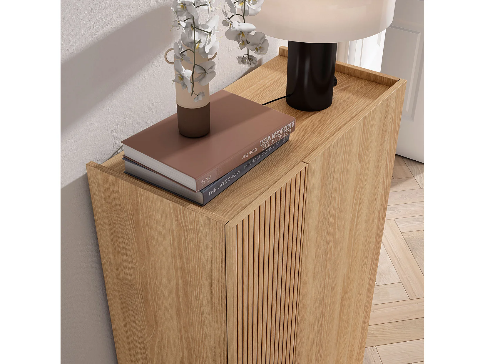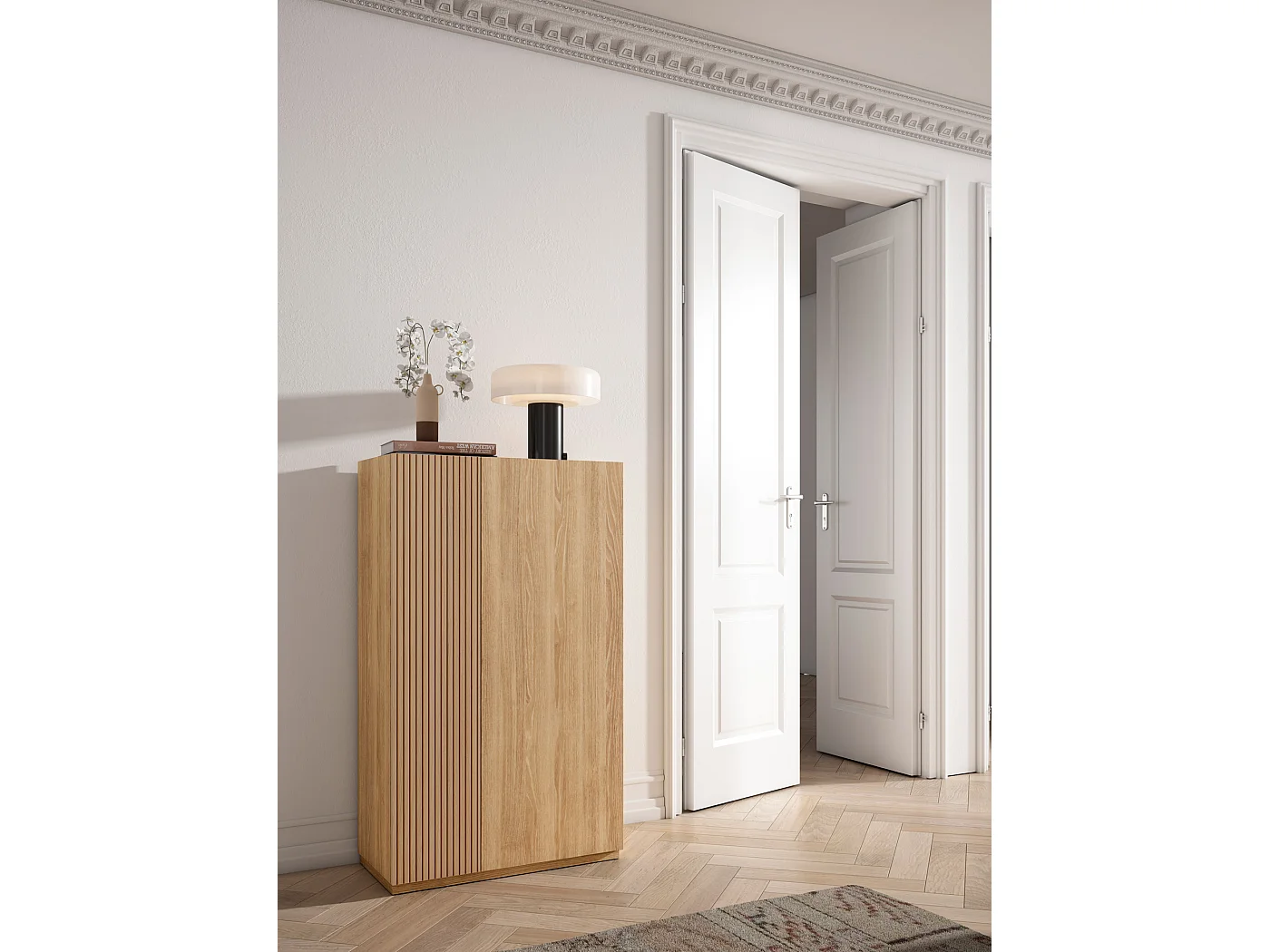 Zapatero - A122cm x L70cm x P35cm roble puerta serigrafía vallado - Akra