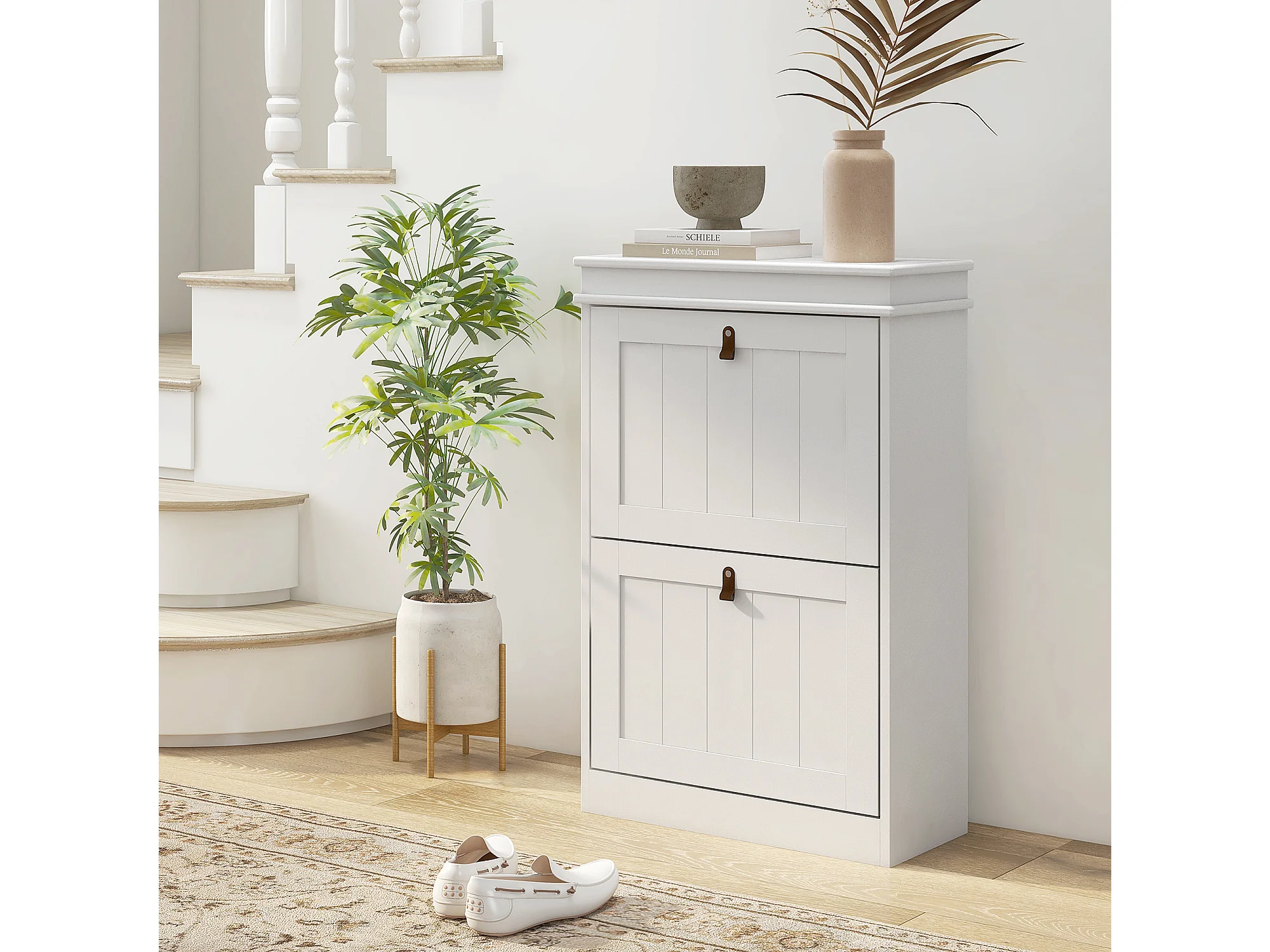 Zapatero Dcanestrell, zapatero con 4 puertas que ahorra espacio, armario de entrada multifuncional, 114x38h100 cm, efecto alerce blanco