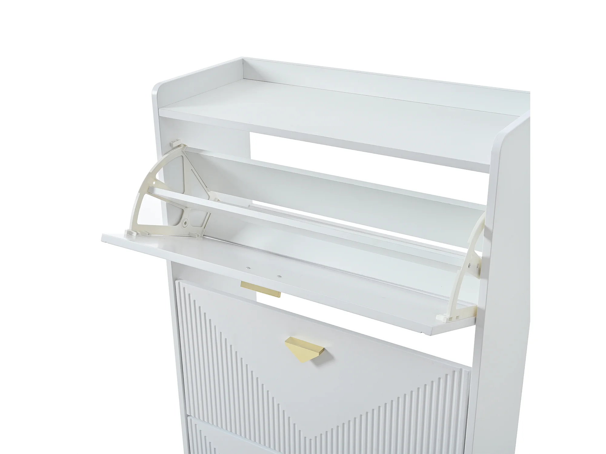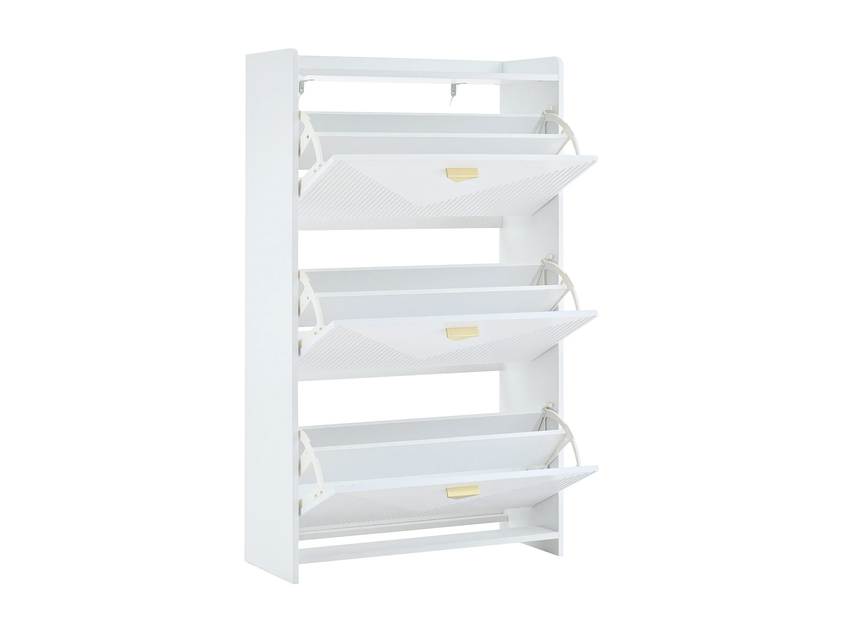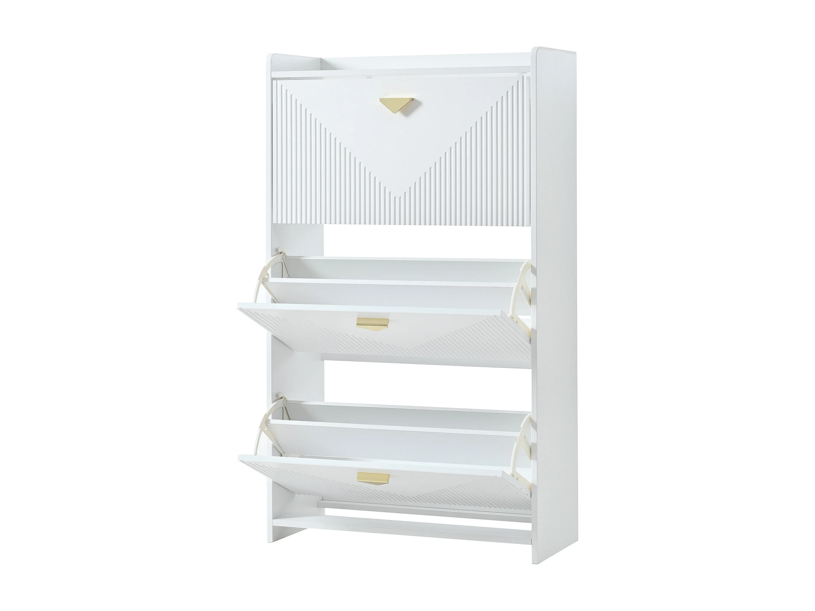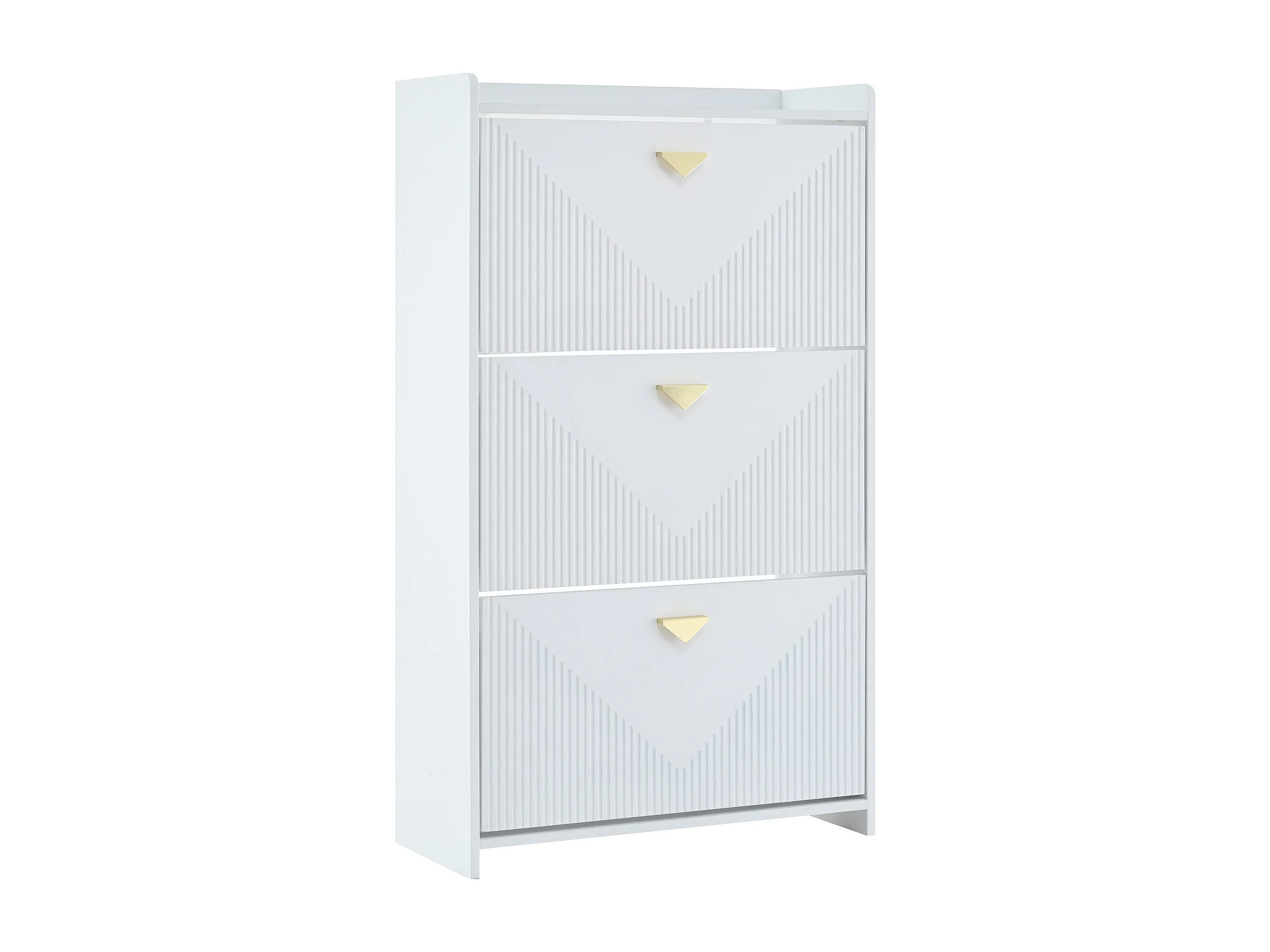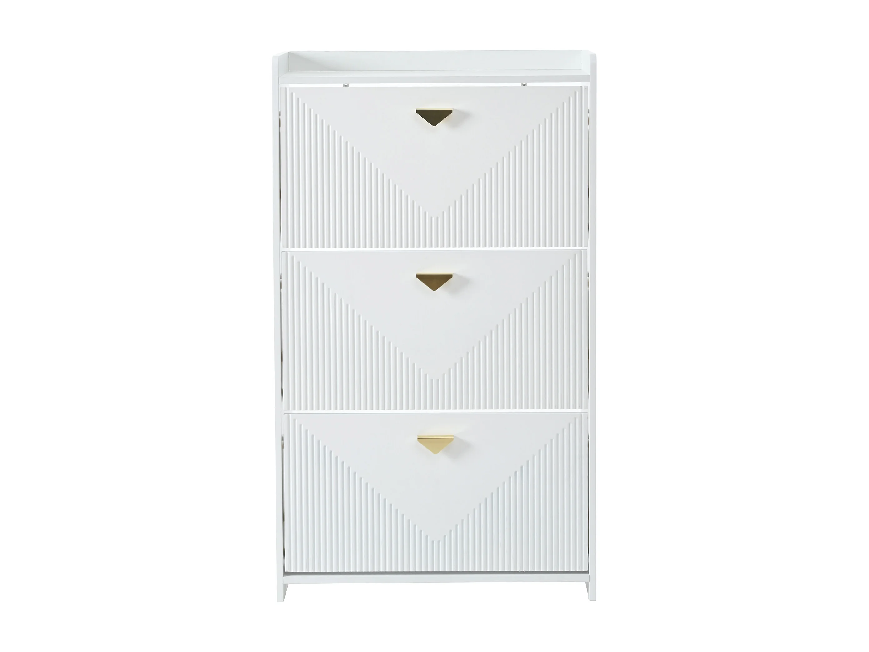 Zapatero blanco con 3 puertas abatibles y 6 compartimentos