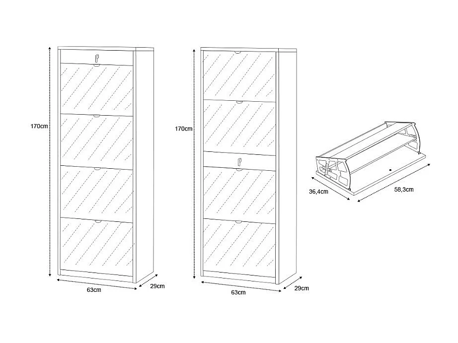 Zapatero cajon 4 puertas espejo 20 pares de zapatos Belty - Gris