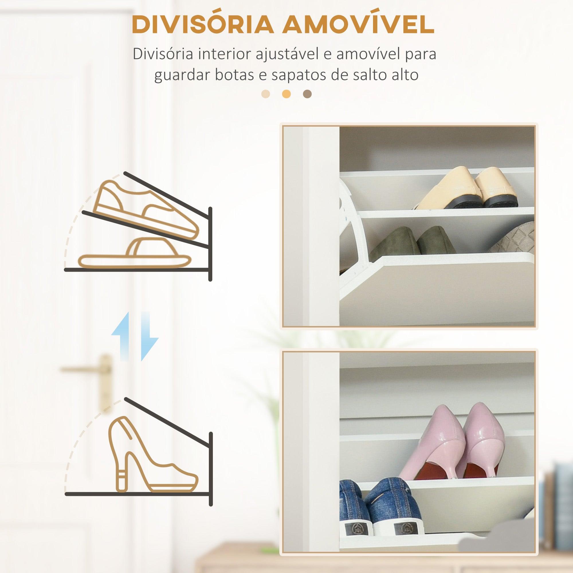 Este zapatero blanco de la marca Homcom es la opción perfecta para organizar tu hogar de manera práctica y eficiente. Con un diseño compacto, ideal para entradas pequeñas o pasillos estrechos, ofrece una solución de almacenamiento funcional sin ocupar mucho espacio. Fabricado con melamina de madera, es resistente y de fácil mantenimiento, lo que garantiza su durabilidad a lo largo del tiempo. El zapatero cuenta con dos cajones abatibles, cada uno con estantes ajustables en dos niveles, proporcionando capacidad para hasta 12 pares de zapatos de tamaño estándar. Las asas de ranura permiten abrir y cerrar los cajones con facilidad, facilitando el acceso a tus zapatos.
