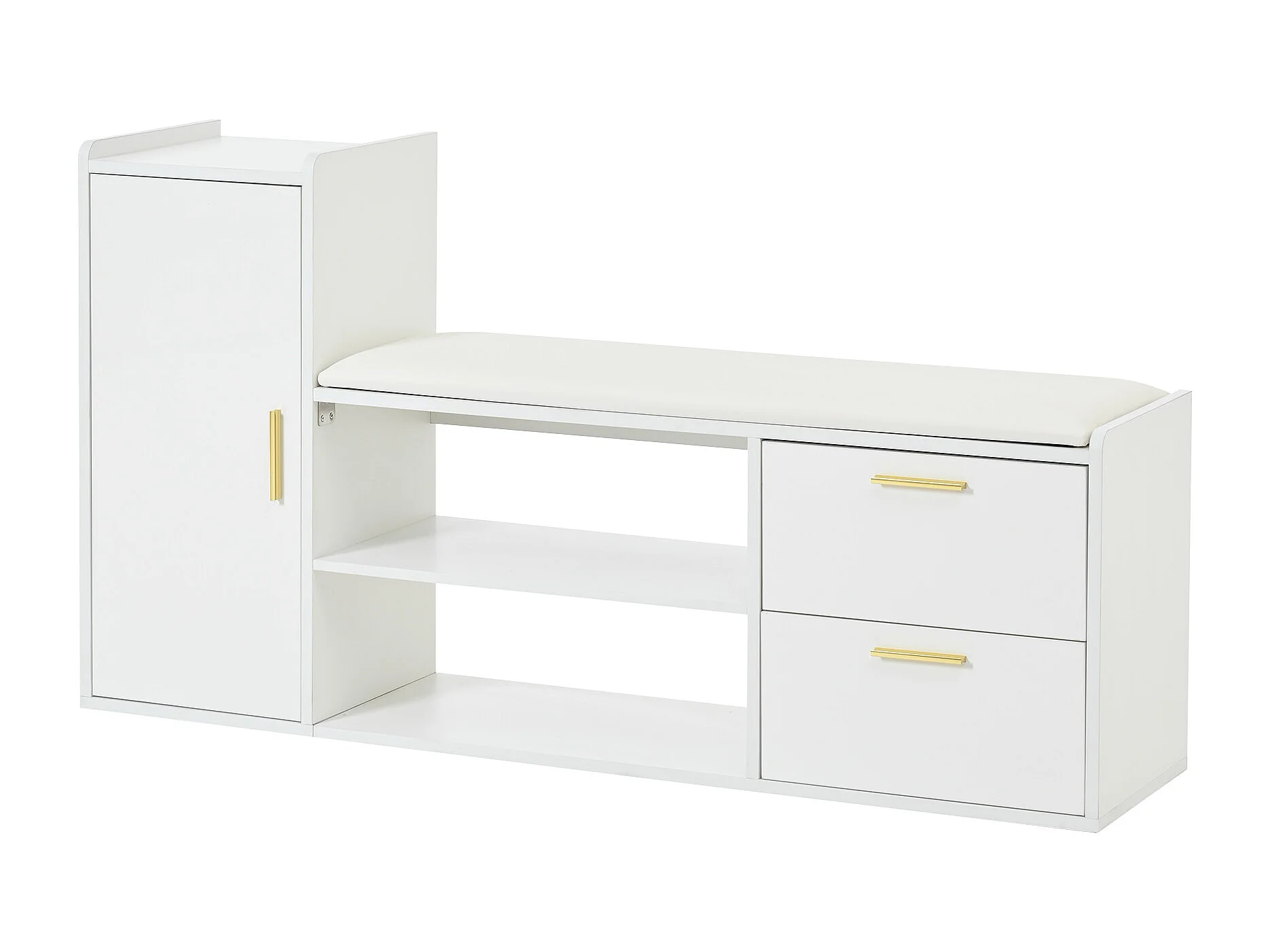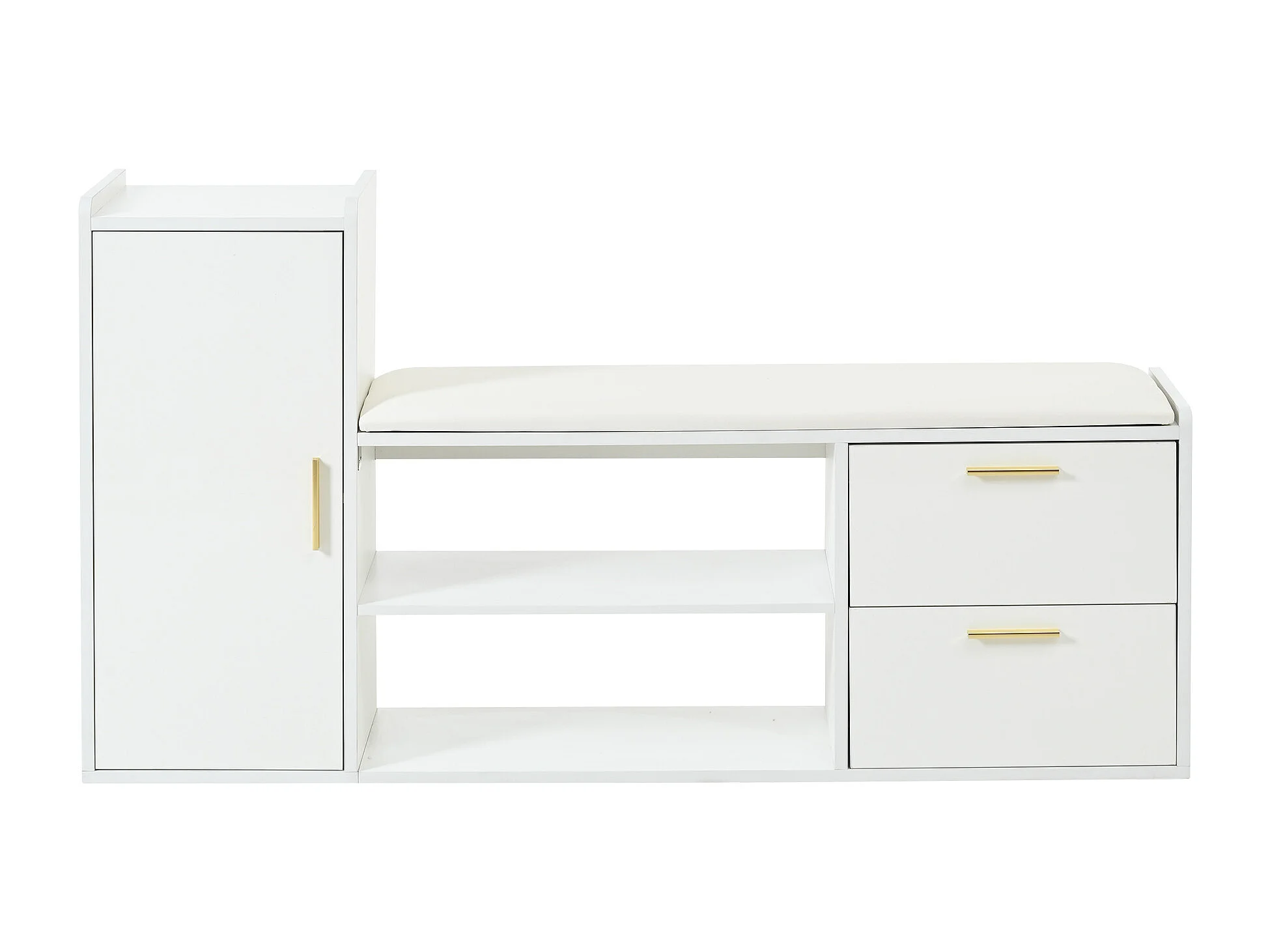 Zapatero con 2 cajones, puerta y banco acolchado - Tiradores metálicos - Blanco