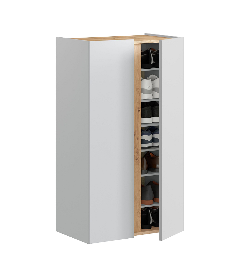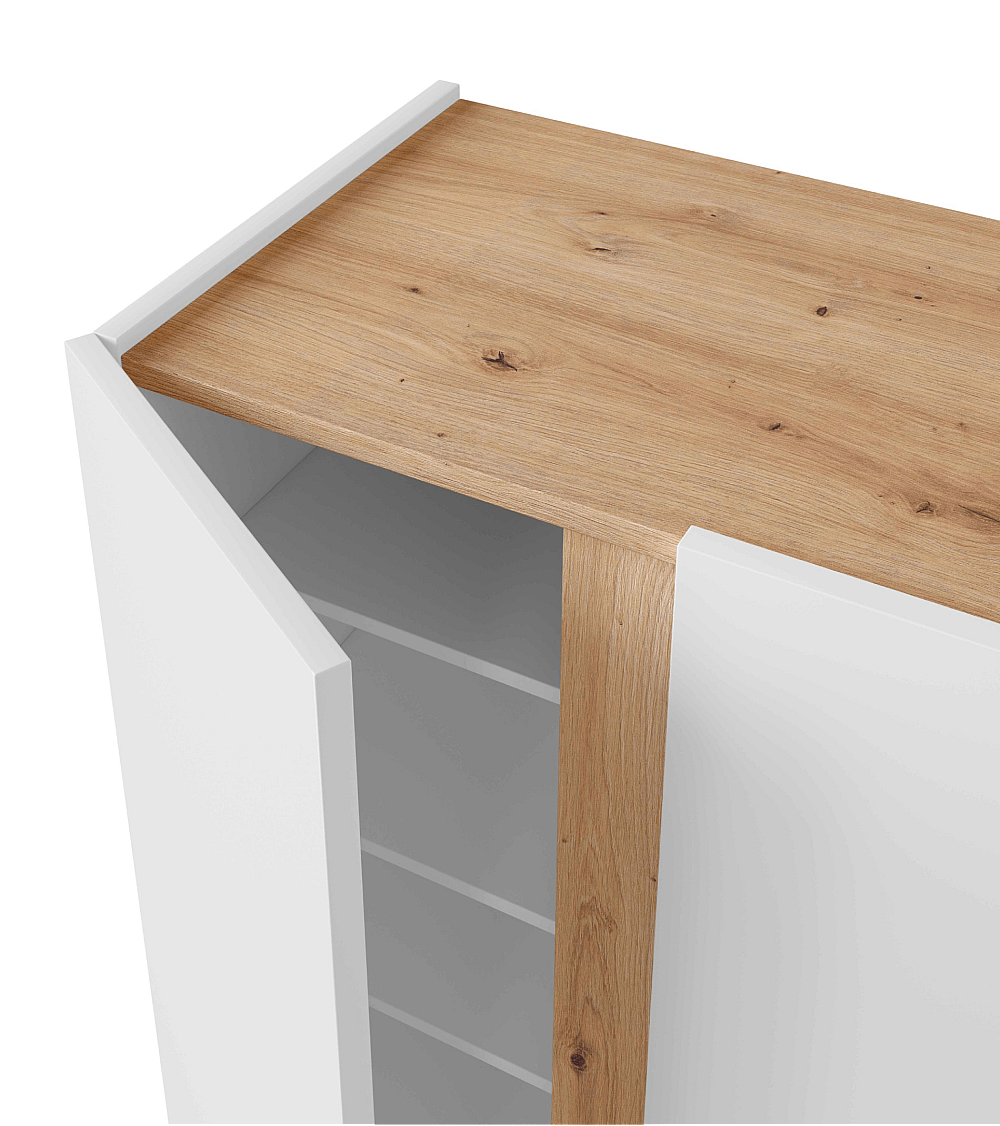 Zapatero de 4 puertas de 115x106x22 cm en tablero de partículas en beige y blanco Klaus