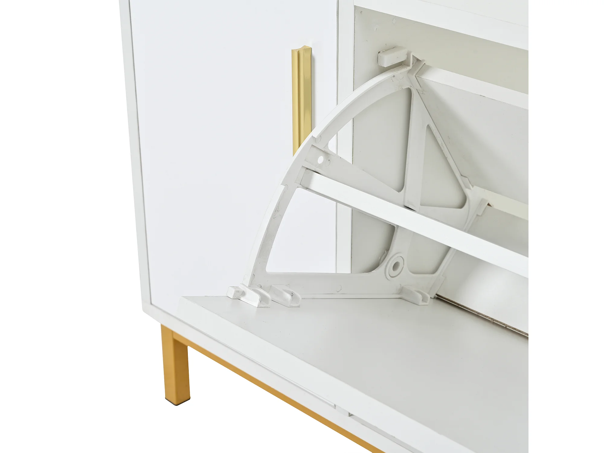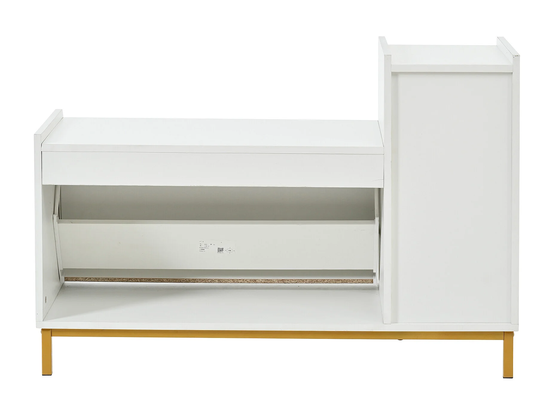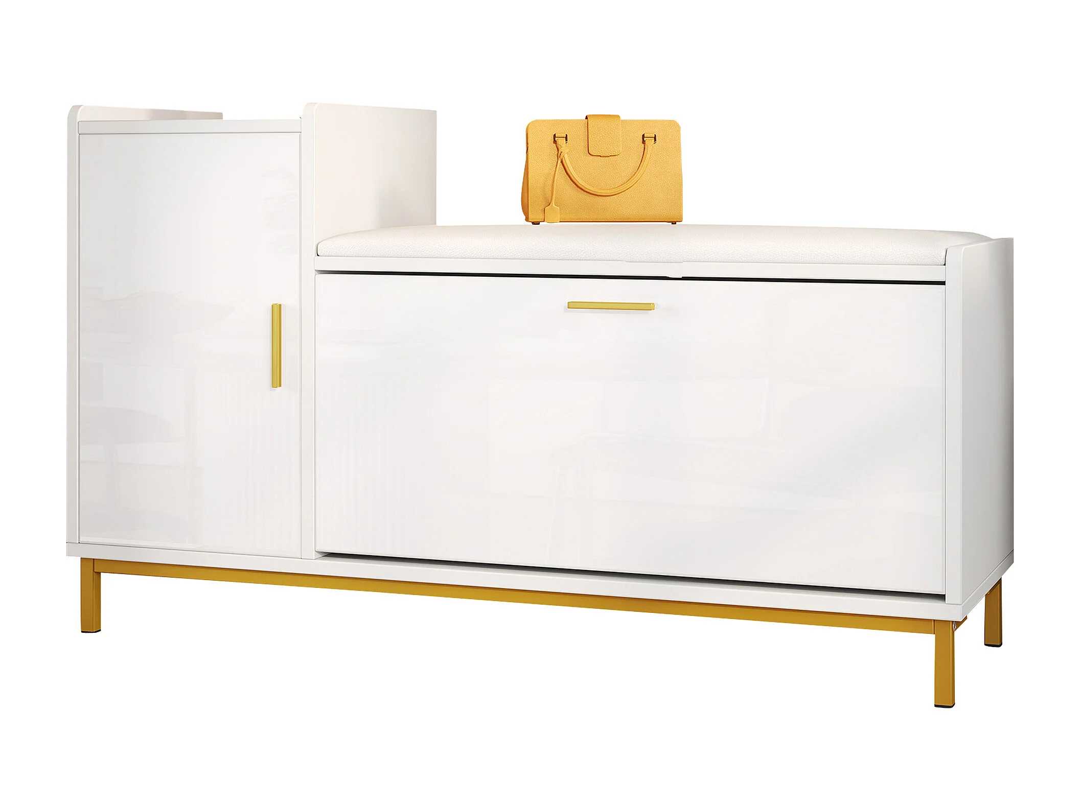 Zapatero con 2 puertas y banco acolchado - Acabado brillante - Blanco + Dorado
