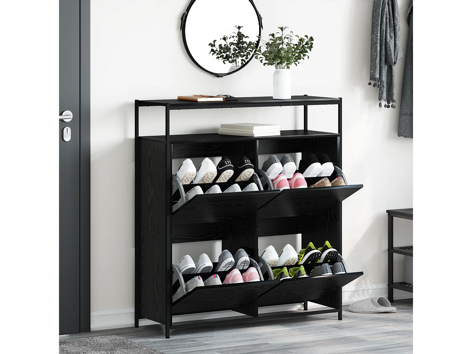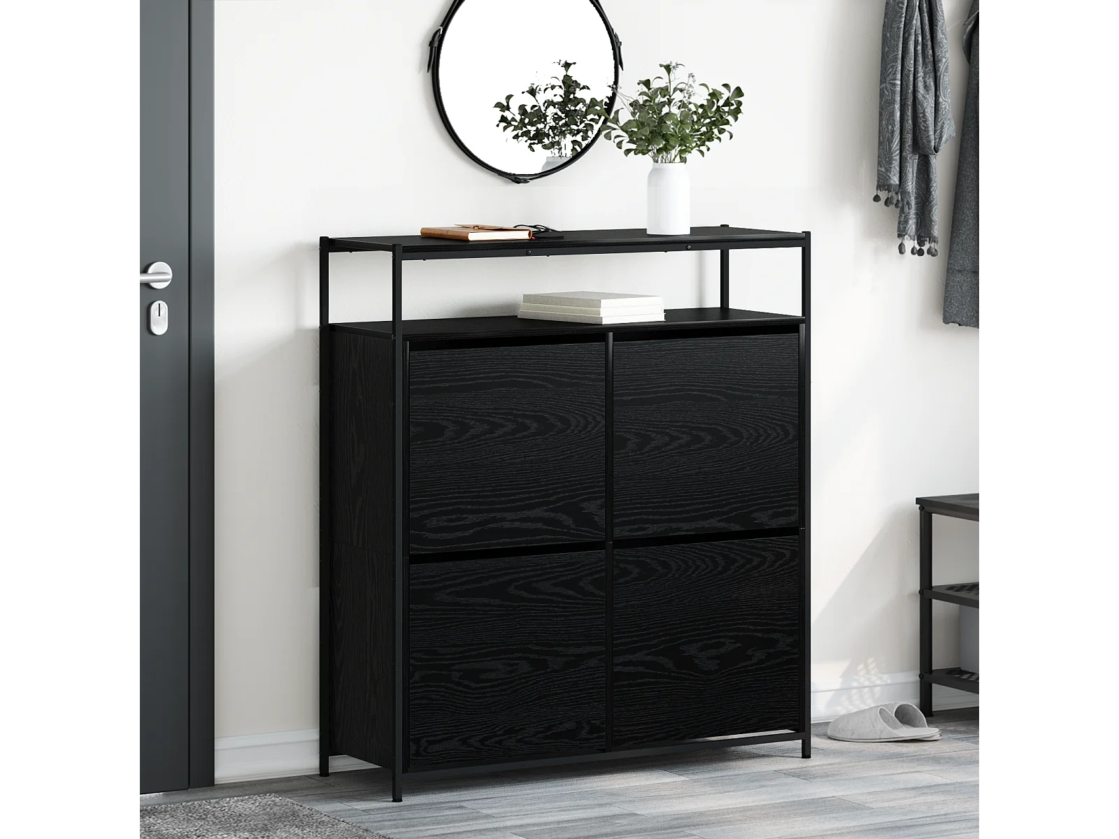 Zapatero con 4 cajones basculantes roble negro 100x34x112 cm