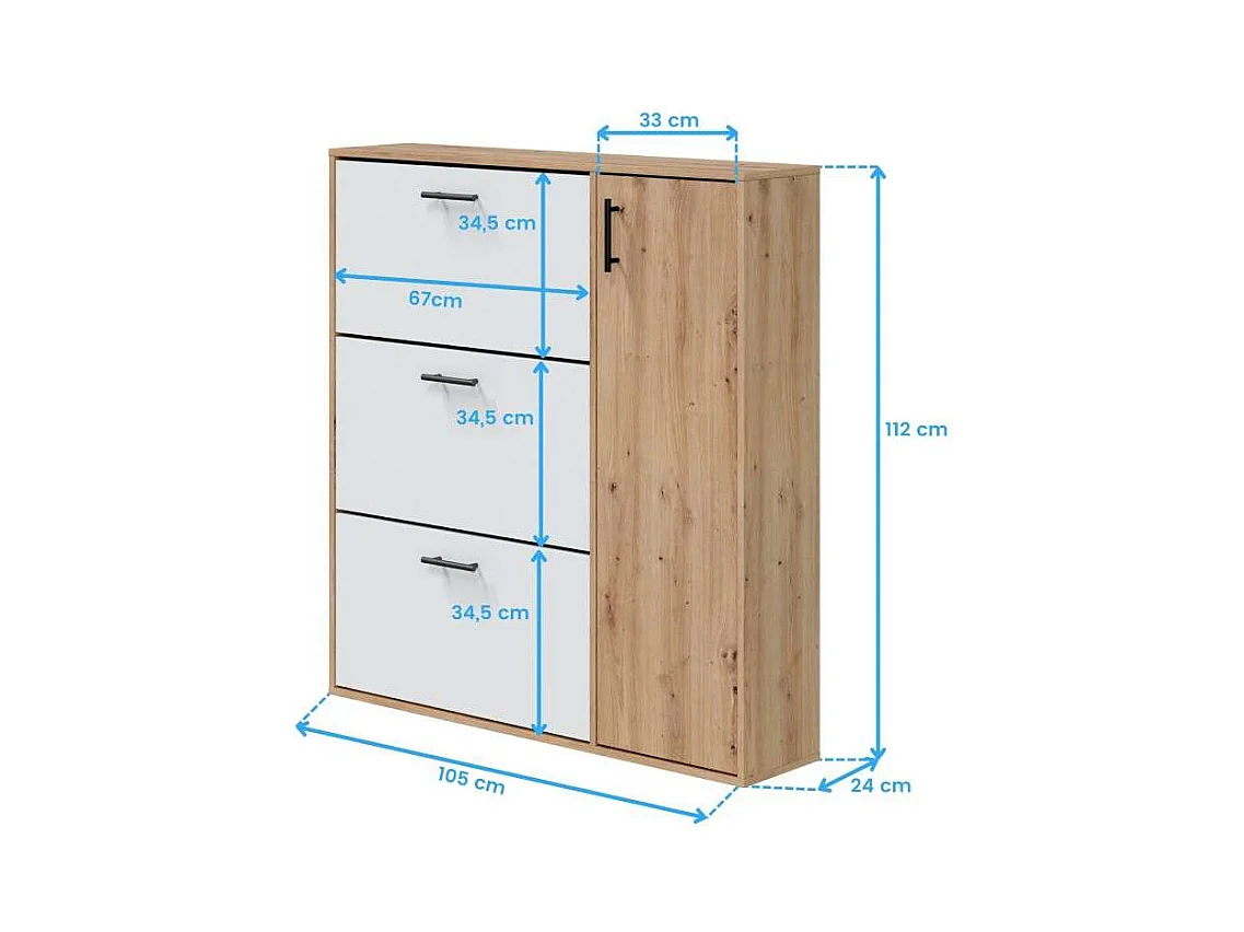 Zapatero Kelia 2 puertas 1 cajón lacado blanco y roble claro