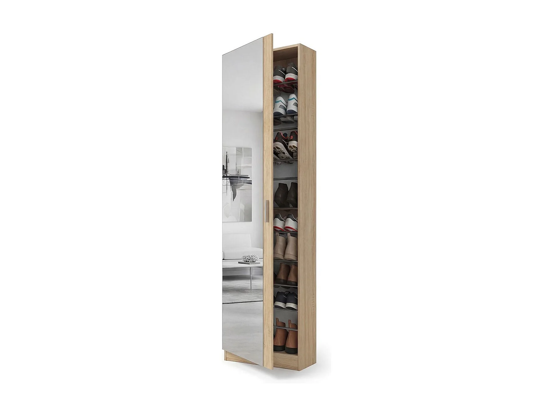 Zapatero alto de 1 puerta con espejo en roble canadian 180x50 cm Roma Roble Canadian