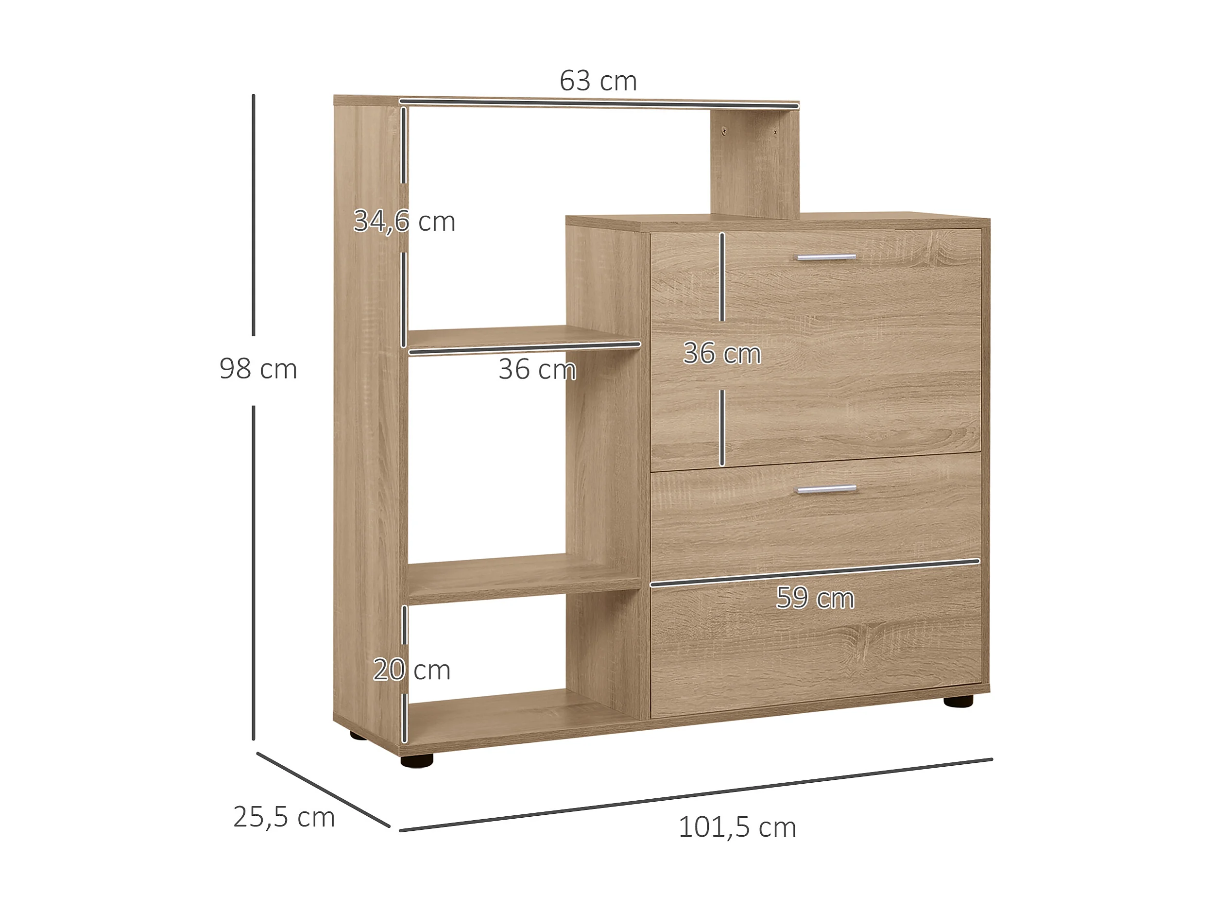 Mueble zapatero roble 80x30x91.5 cm HOMCOM